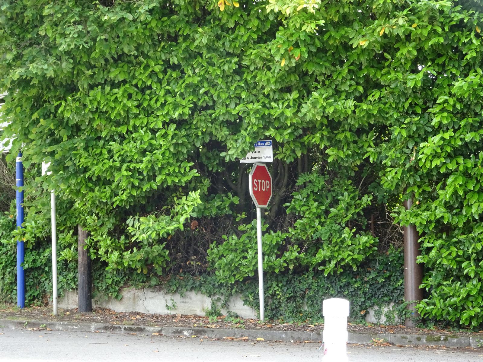 ![]() ... there's a branch blocking the view of the sign. When I first saw it I thought that I might be able to tuck it behind the sign but while I was taking puctures of the road, a woman on crutches arrived and sat down on the bench which is facing the sign so she would definitely have seen me if I had tried. I've got another plan though. The traffic is very light around here so I think that if I drive along the road, I will be able to stop the car at the junction at the other end for long enough to get out and take a picture of the sign there. UTC Time: 15:25, Thursday 08 June 2023 Local Time: 17:25, Thursday 08 June 2023 Estimate of longitude: 5° 46' 54.19" E = 5.781720° Estimate of latitude: 45° 10' 16.21" N = 45.171170° Possible error on position estimate: 5 metres | |
