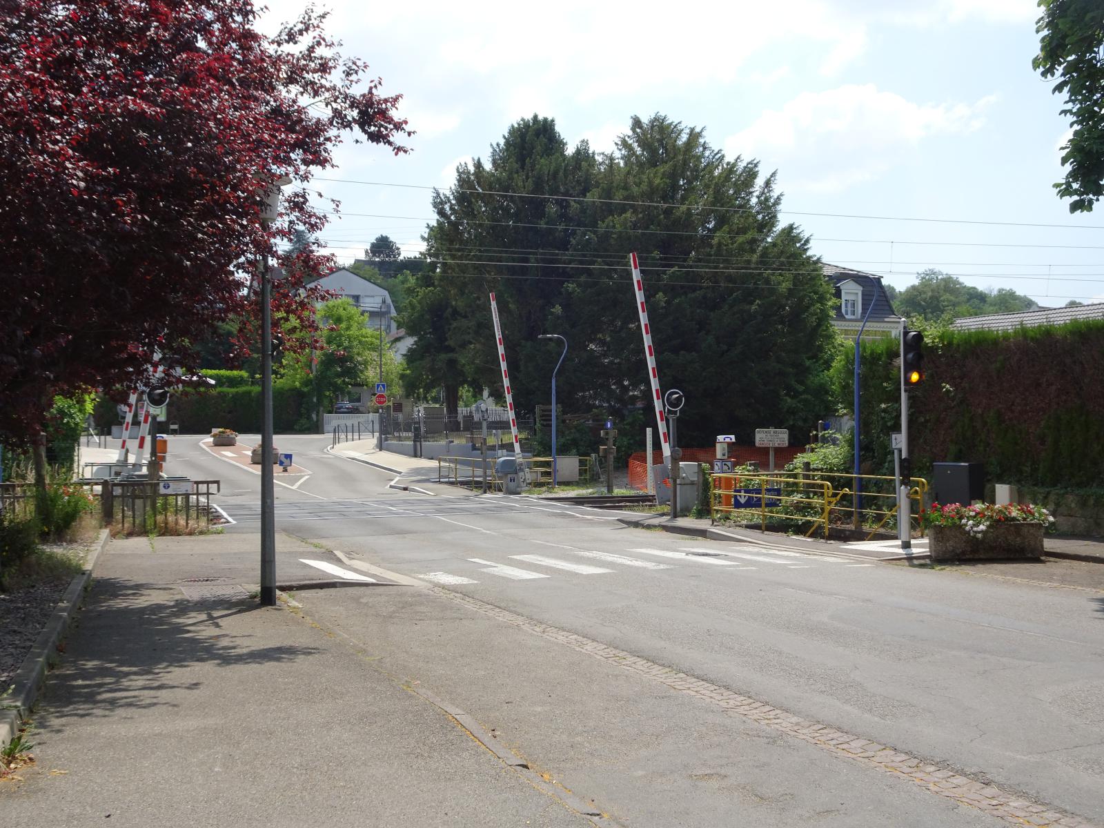 ![]() There's an underpass so that pedestrians can cross the railway when the gates are closed. Two trains came through while I was here though and the barriers were only closed for about a minute each time. The only pedestrian who was wanting to cross just waited for them to re-open. UTC Time: 11:59, Saturday 10 June 2023 Local Time: 13:59, Saturday 10 June 2023 Estimate of longitude: 7° 17' 38.15" E = 7.293930° Estimate of latitude: 47° 41' 40.13" N = 47.694480° Possible error on position estimate: 10 metres | |
