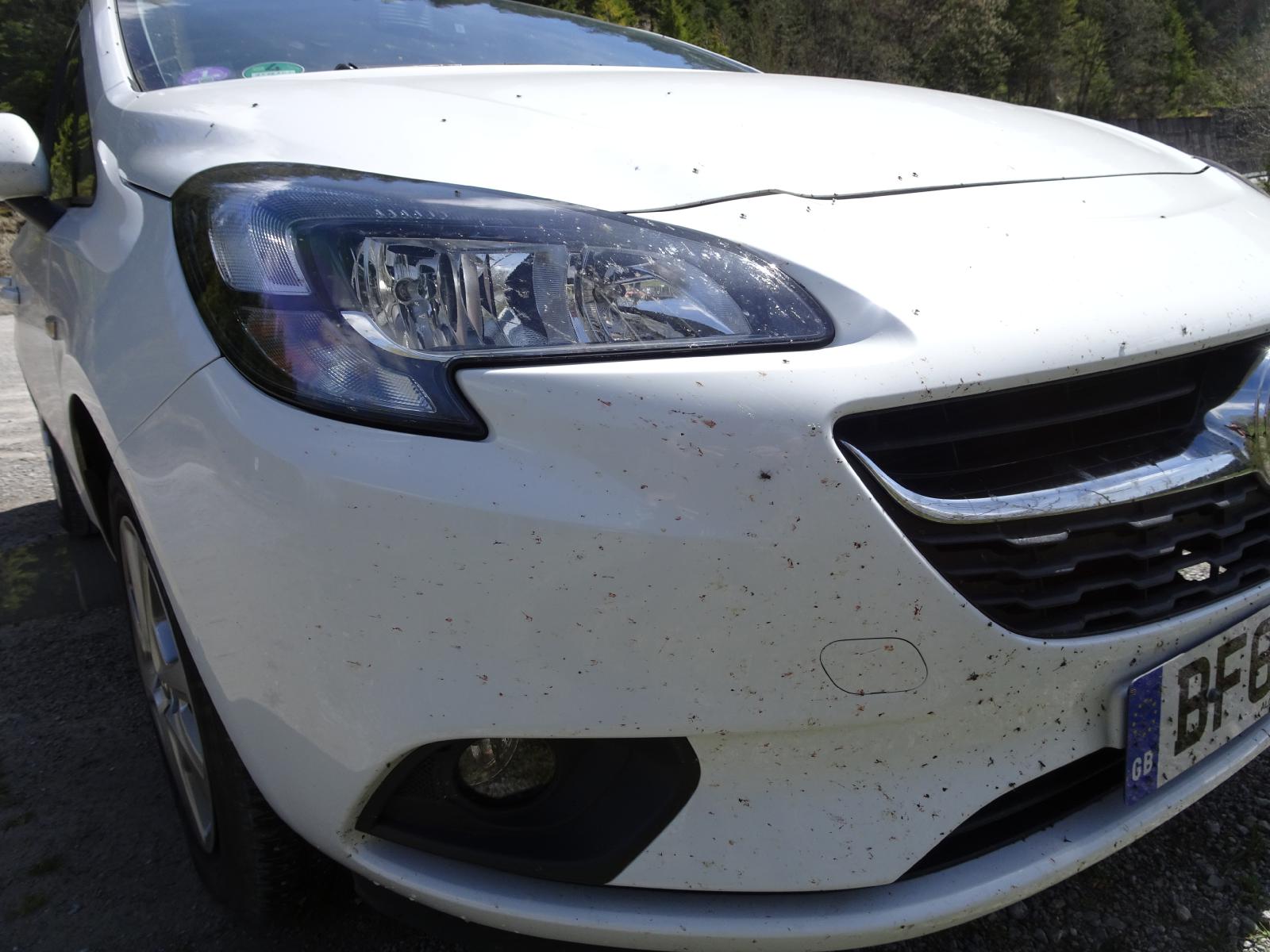 ![]() A problem with having a white car is that the dead insects really show up on it. I picked most of these up on the German autobahns. UTC Time: 11:03, Friday 05 May 2023 Local Time: 13:03, Friday 05 May 2023 Estimate of longitude: 19° 33' 43.78" E = 19.562160° Estimate of latitude: 49° 12' 24.44" N = 49.206790° Possible error on position estimate: 5 metres | |
