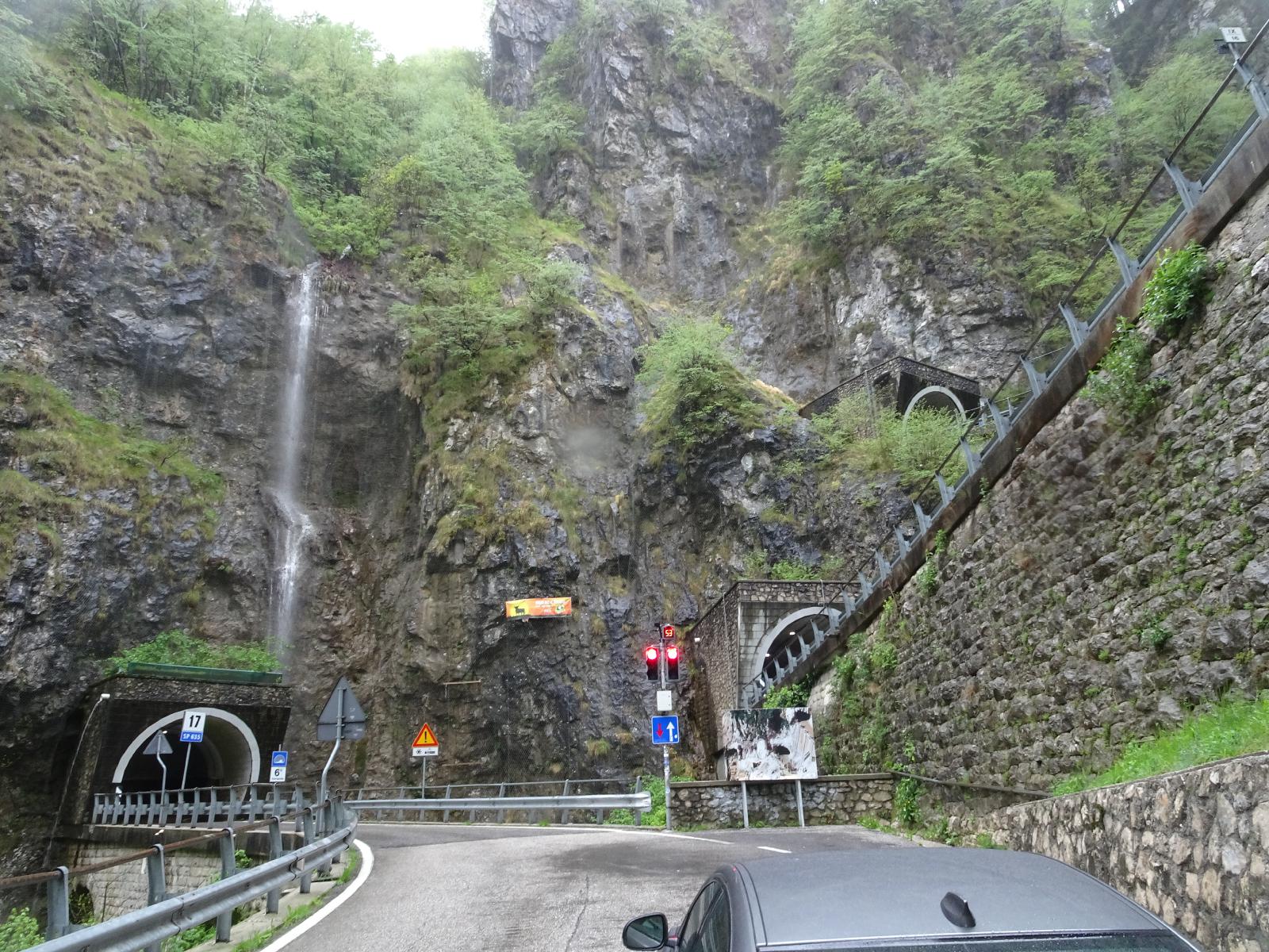![]() Waiting at the traffic lights which control the top six hairpins of the San Boldo Pass, which are all in tunnels. We will go into the first on the left of the picture and emerge to the right of the traffic lights. The entrance to the third is above that. UTC Time: 08:15, Friday 12 May 2023 Local Time: 10:15, Friday 12 May 2023 Estimate of longitude: 12° 10' 11.93" E = 12.169980° Estimate of latitude: 46° 0' 15.16" N = 46.004210° Possible error on position estimate: 5 metres | |
