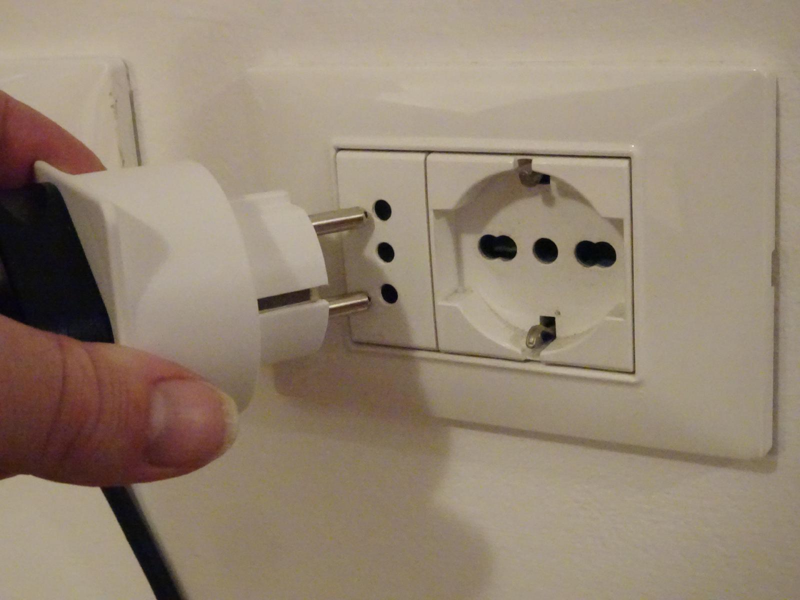 ![]() This room has seven sockets like the one on the left but only one like the one on the right. My plugs fit in the one on the right but their pins are too wide for the one on the left. In last night's hotel, all the sockets were like the one on the left and my plugs did fit but they were very tight. UTC Time: 17:12, Friday 12 May 2023 Local Time: 19:12, Friday 12 May 2023 Estimate of longitude: 11° 6' 7.92" E = 11.102200° Estimate of latitude: 46° 8' 31.02" N = 46.141950° Possible error on position estimate: 20 metres | |