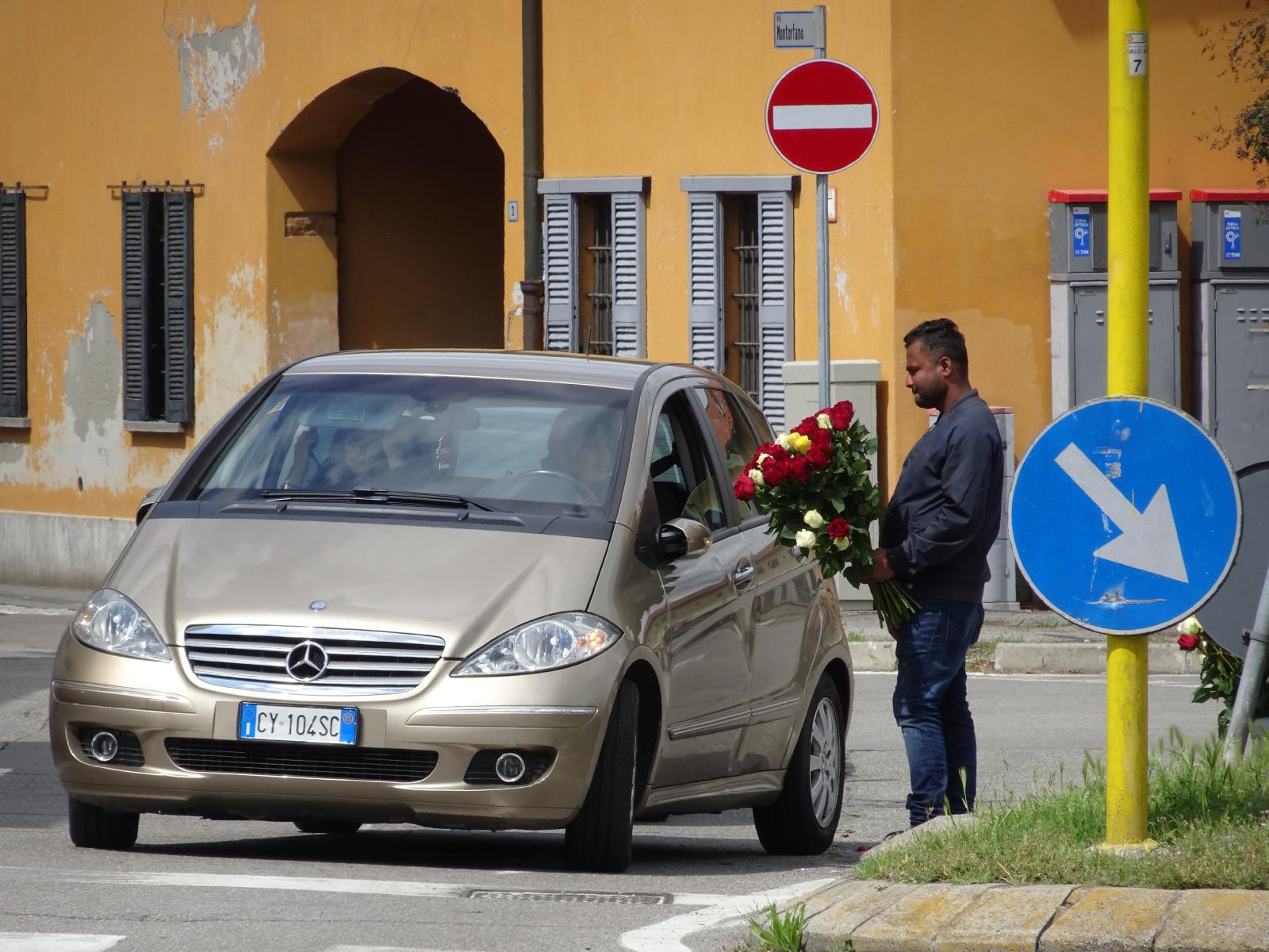 ![]() I think he's trying to sell flowers to motorists stuck at traffic lights. UTC Time: 12:55, Sunday 14 May 2023 Local Time: 14:55, Sunday 14 May 2023 Estimate of longitude: 9° 19' 31.62" E = 9.325450° Estimate of latitude: 45° 21' 46.30" N = 45.362860° Possible error on position estimate: 5 metres | |
