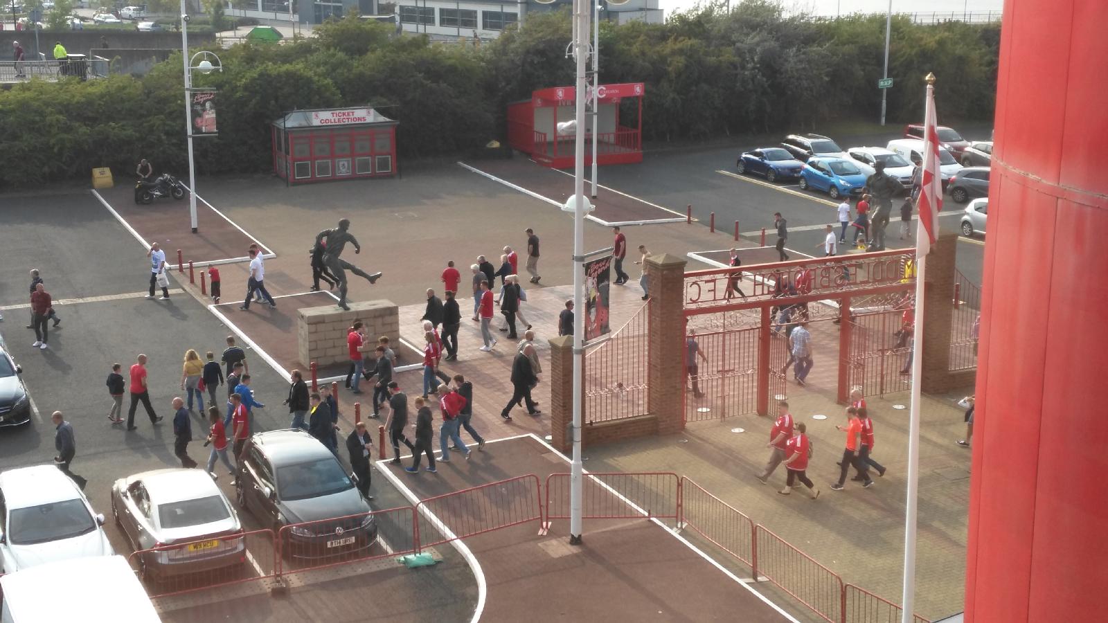 ![]() People leaving the ground. UTC Time: 15:55, Saturday 22 August 2015 Local Time: 16:55, Saturday 22 August 2015 Estimate of longitude: 1° 13' 3.61" W = -1.217670° Estimate of latitude: 54° 34' 39.14" N = 54.577540° Possible error on position estimate: 200 metres | |