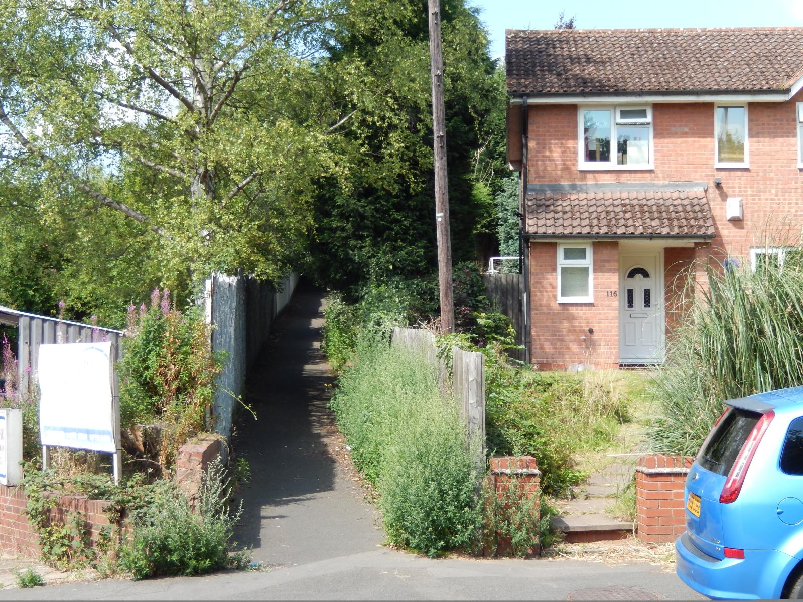![]() The route to my first ground goes up this alleyway, along the side of that house, number 116. That number is starting to plague me already. It's the number of my hotel room here in Kidderminster and I've just seen a poster advertising that one TV company will be showing 116 football matches this year. I assume that won't be one from each ground. UTC Time: 11:18, Saturday 08 August 2015 Local Time: 12:18, Saturday 08 August 2015 Estimate of longitude: 2° 14' 20.36" W = -2.238990° Estimate of latitude: 52° 22' 50.63" N = 52.380730° Possible error on position estimate: 100 metres | |