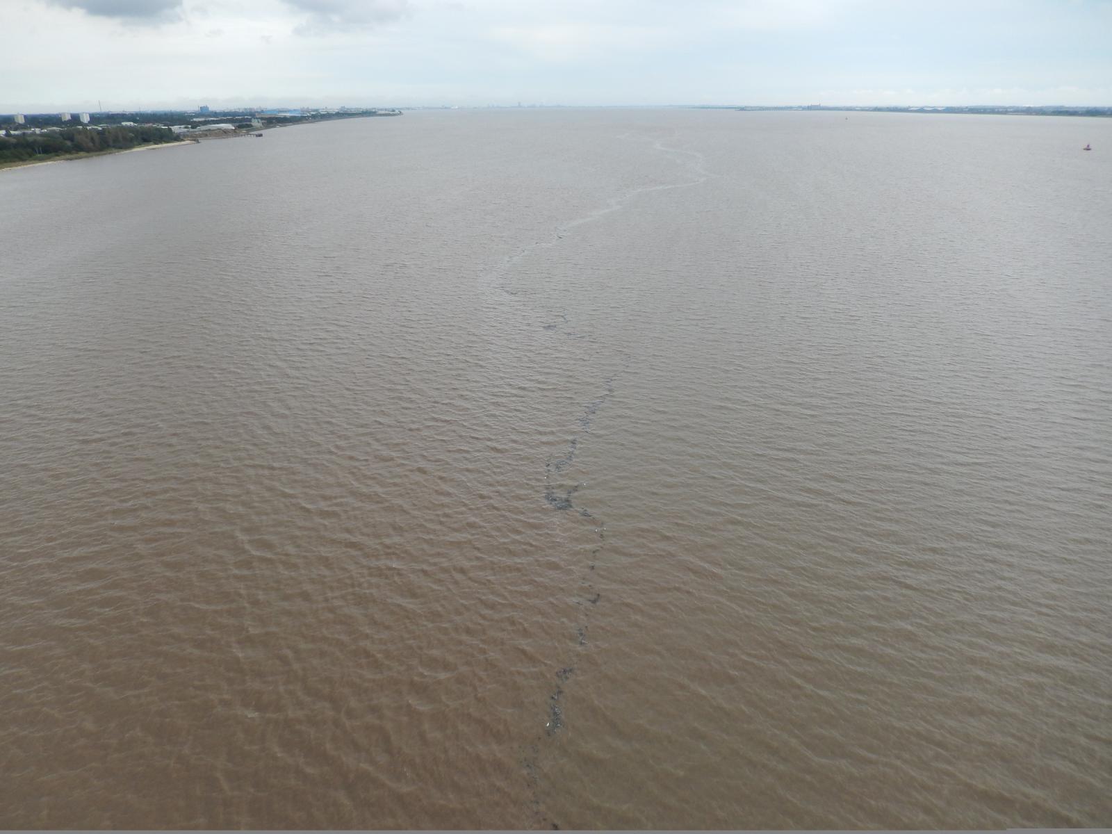 ![]() There's a line of flotsam stretching into the distance. I wonder whether it has collected in the boundary between waters from the Ouse and the Trent, the two rivers which combine to form the Humber about 17 km upstream from here. Alternatively, it could just be in the wake of a sandbar. UTC Time: 12:29, Monday 24 August 2015 Local Time: 13:29, Monday 24 August 2015 Estimate of longitude: 0° 27' 0.61" W = -0.450170° Estimate of latitude: 53° 42' 37.19" N = 53.710330° Possible error on position estimate: 100 metres | |