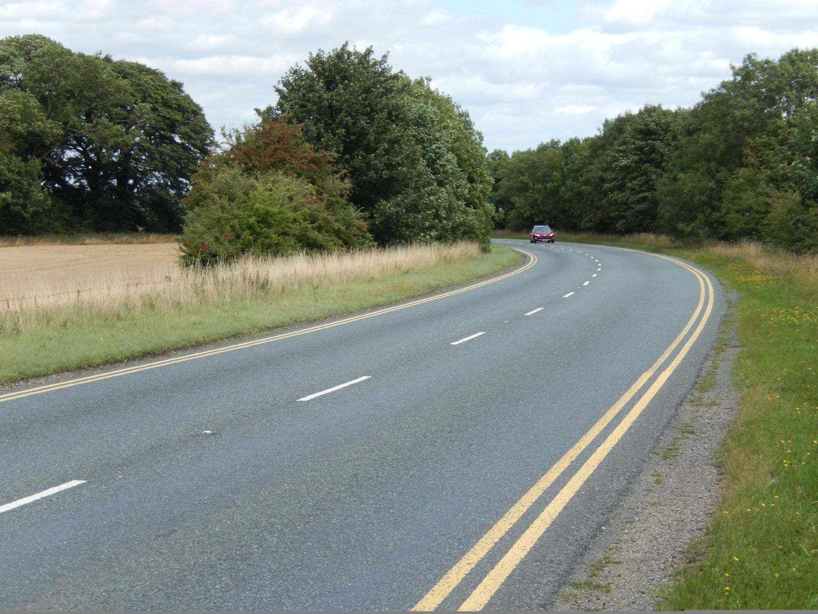 ![]() I wondered why this road well outside any towns had double yellow lines, and why it was curved when I thought it was supposed to be dead straight all the way from near Scunthorpe to Lincoln. Later in the day, I realised that it's because this is where the road diverts around RAF Scampton, the home of the Red Arrows. UTC Time: 12:18, Tuesday 25 August 2015 Local Time: 13:18, Tuesday 25 August 2015 Estimate of longitude: 0° 31' 57.36" W = -0.532600° Estimate of latitude: 53° 18' 46.69" N = 53.312970° Possible error on position estimate: 10 metres | |