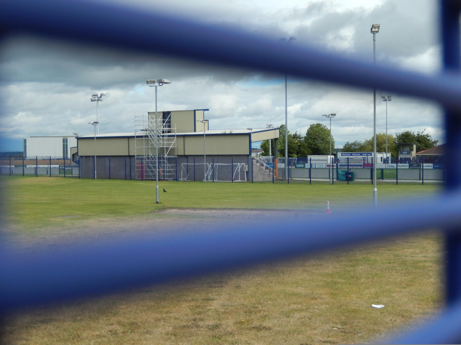 ![]() I said yesterday that I would show you why Wrexham and a few other Welsh clubs play in the English league. The reason is that rugby is much more popular than football here so the Welsh football league is of a much lower standard than that in England. If the few big clubs played in the Welsh league, they would be completely out of place. In UEFA's ranking of 54 European national football leagues, the English league comes 3rd and the Welsh 51st. What you are looking at here is the home ground of the club which finished third in last year's Welsh Premier League, the top division of Welsh football, which I suppose makes them the Welsh equivalent of Arsenal. The ground has a capacity of 1600 spectators, roughly half that of the smallest ground on my list of 116. The club in question is Airbus UK Broughton and the ground is actually on the airfield, which is why I can't get close to it. Like many of the clubs which I will be visiting, it started as a works team and then started to bring in players from outside. There are no major clubs in England which still bear the name of the original employer but Philips Sport Vereniging, originally the team of the Dutch electronics giant, it a well-known European example. The same rules on advertising which mean that Philips have to play internationally under the name PSV Eindhoven have meant that Airbus have played their few international matches as AUK Broughton. UTC Time: 10:01, Monday 10 August 2015 Local Time: 11:01, Monday 10 August 2015 Estimate of longitude: 2° 58' 57.47" W = -2.982630° Estimate of latitude: 53° 10' 13.66" N = 53.170460° Possible error on position estimate: 100 metres | |
