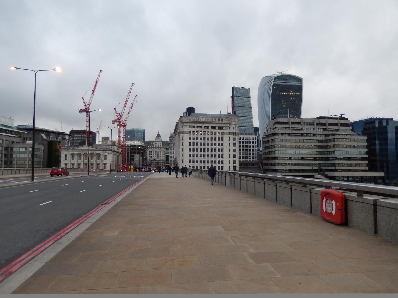 ![]() Looking along the bridge. UTC Time: 18:05, Monday 31 August 2015 Local Time: 19:05, Monday 31 August 2015 Estimate of longitude: 0° 5' 15.43" W = -0.087620° Estimate of latitude: 51° 30' 27.47" N = 51.507630° Possible error on position estimate: 20 metres | |