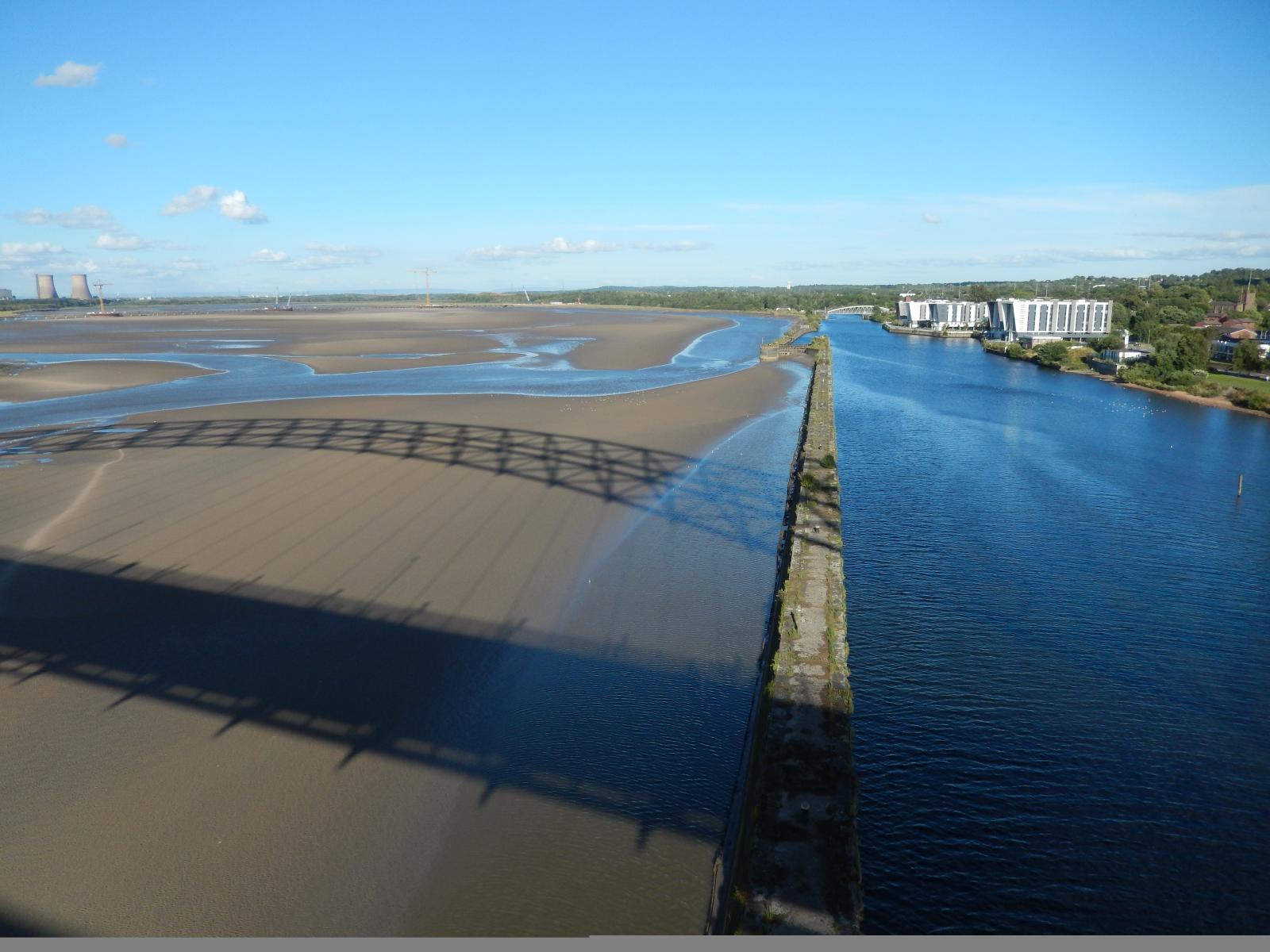 ![]() The view from the bridge. On the left is the River Mersey, which flows from Manchester but is much too shallow to be navigable. On the right is the Manchester Ship Canal. UTC Time: 17:12, Monday 10 August 2015 Local Time: 18:12, Monday 10 August 2015 Estimate of longitude: 2° 44' 18.89" W = -2.738580° Estimate of latitude: 53° 20' 41.71" N = 53.344920° Possible error on position estimate: 100 metres | |