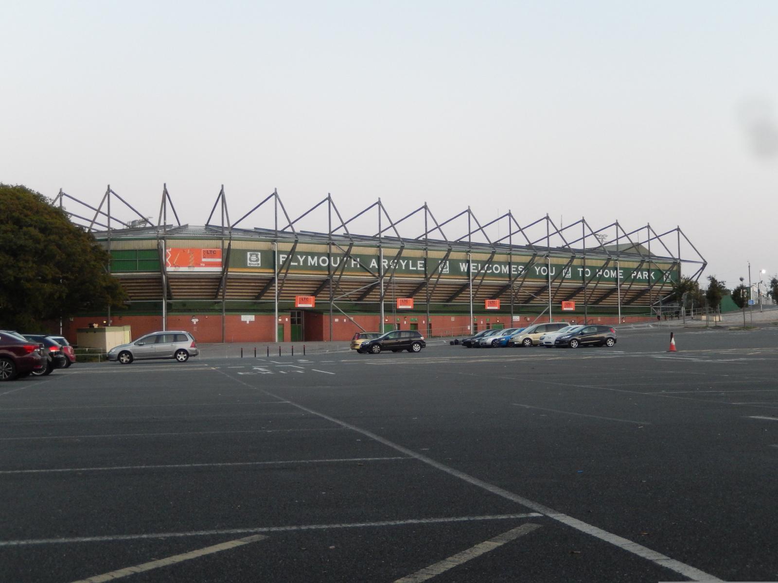 ![]() Home Park, the most Southerly and most Westerly ground on my list. I haven't done the calculations but it's probably also the one with the greatest average distance to all of the others. UTC Time: 18:55, Monday 07 September 2015 Local Time: 19:55, Monday 07 September 2015 Estimate of longitude: 4° 9' 10.58" W = -4.152940° Estimate of latitude: 50° 23' 21.23" N = 50.389230° Possible error on position estimate: 100 metres | |