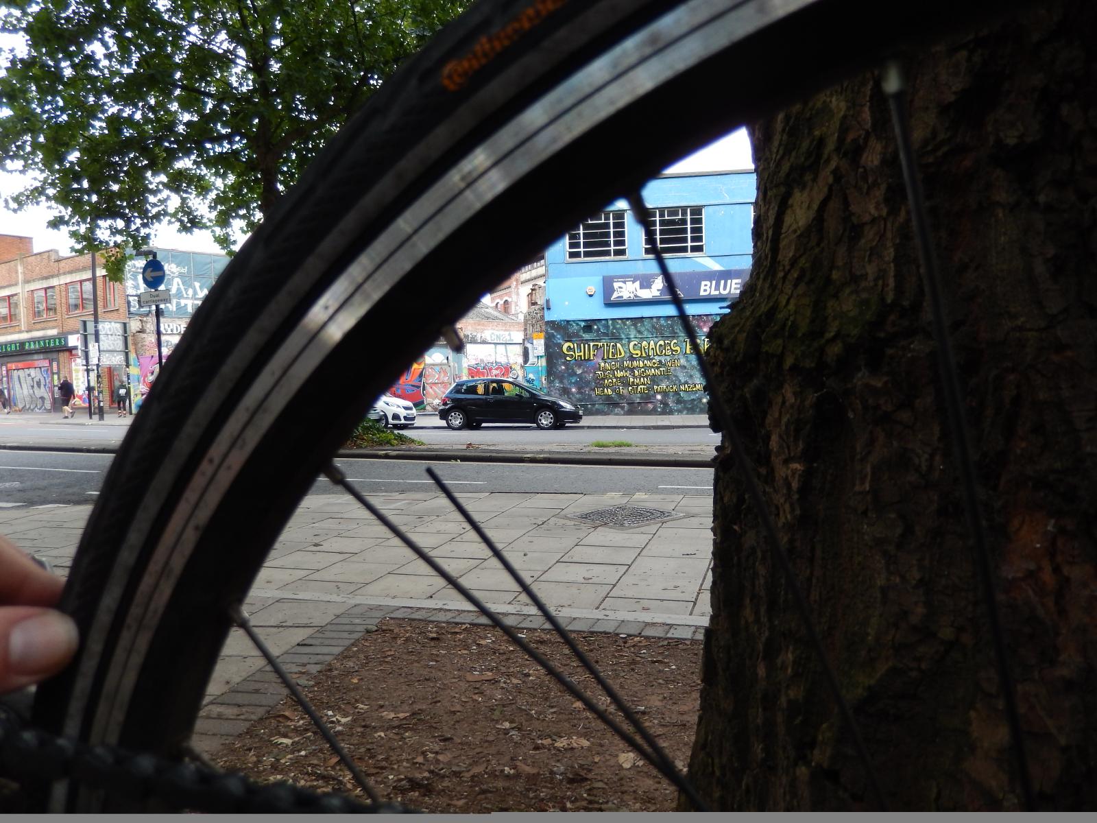 ![]() Now a spoke has gone. I heard it break while I was trying to keep up with the bus in front of me accelerating uphill from a standing start across Cabot Circus. UTC Time: 15:48, Wednesday 09 September 2015 Local Time: 16:48, Wednesday 09 September 2015 Estimate of longitude: 2° 35' 28.28" W = -2.591190° Estimate of latitude: 51° 27' 38.48" N = 51.460690° Possible error on position estimate: 100 metres | |
