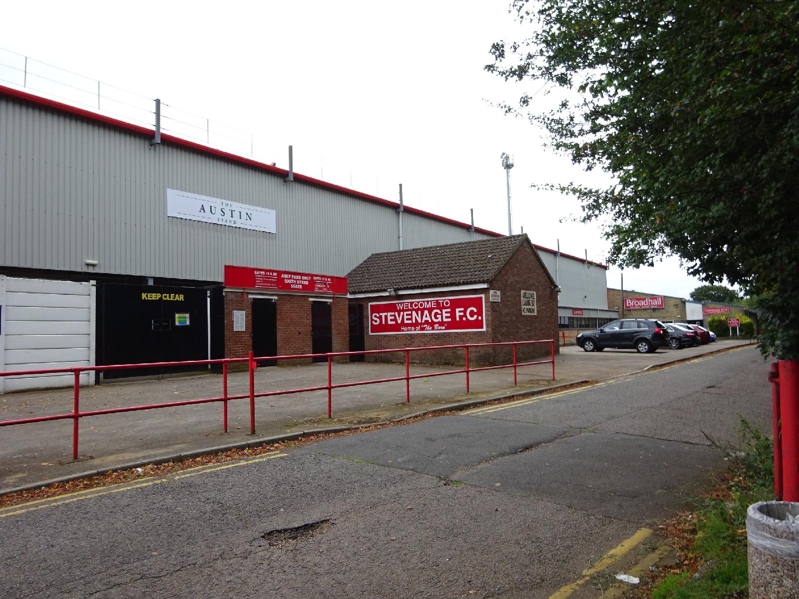![]() Broadhall Way, also known by the possibly undesirable name of the Lamex Stadium. This is one of the few grounds from the period between 1955 and 1988. It was opened in 1980. Its capacity is 6722 and its record attendance was 8040. UTC Time: 11:27, Wednesday 16 September 2015 Local Time: 12:27, Wednesday 16 September 2015 Estimate of longitude: 0° 11' 41.17" W = -0.194770° Estimate of latitude: 51° 53' 21.95" N = 51.889430° Possible error on position estimate: 100 metres | |