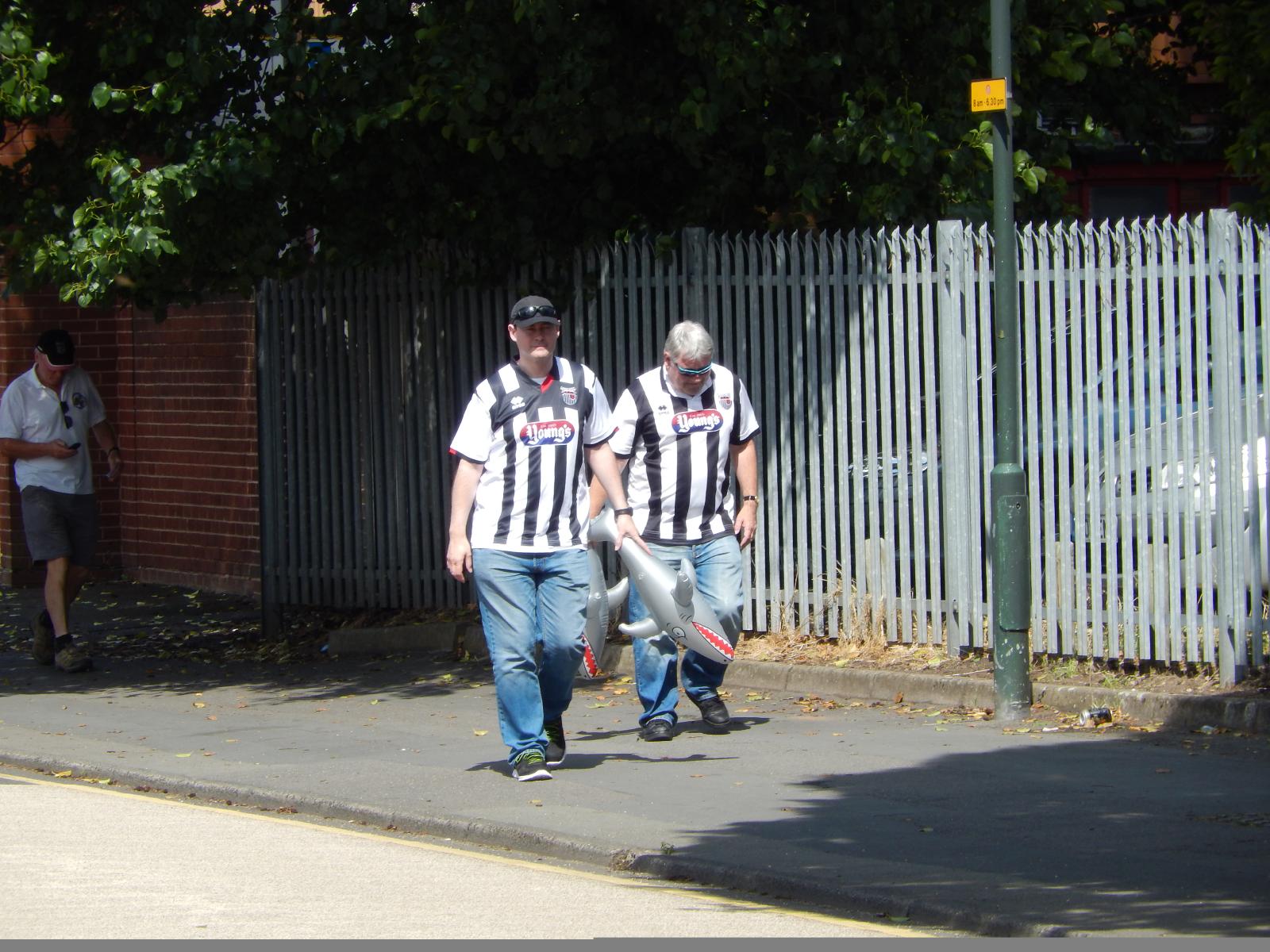 ![]() Grimsby Town have been in the news a couple of times in recent weeks. One was because they raised £100000 in a crowdfunding campaign to help them get back into the fourth division, which they clearly still see as much better than the fifth. The other was because one of their supporters was convicted of "assaulting a steward with an inflatable shark". When I read that, I didn't appreciate how popular such sharks were with Grimsby supporters. I would see a lot of them today. UTC Time: 13:28, Saturday 08 August 2015 Local Time: 14:28, Saturday 08 August 2015 Estimate of longitude: 2° 14' 37.97" W = -2.243880° Estimate of latitude: 52° 22' 48.32" N = 52.380090° Possible error on position estimate: 100 metres | |