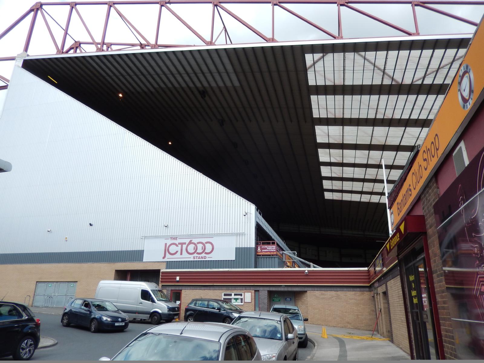 ![]() You get a good look at the inside of the cantilevered roof from outside the club shop. UTC Time: 11:22, Monday 17 August 2015 Local Time: 12:21, Monday 17 August 2015 Estimate of longitude: 1° 45' 35.35" W = -1.759820° Estimate of latitude: 53° 48' 13.28" N = 53.803690° Possible error on position estimate: 100 metres | |