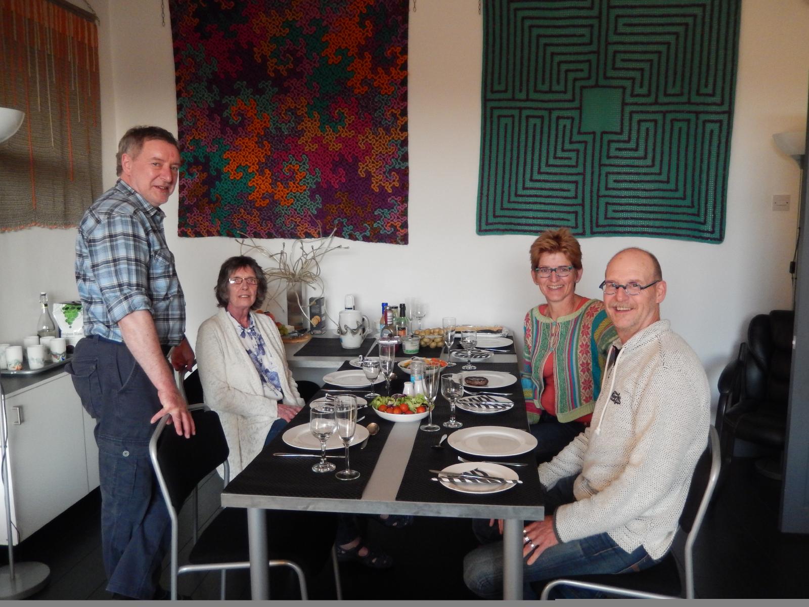 ![]() On the left are my mother and her husband. On the right are the world's fastest knitter and her husband, visiting from the Netherlands. UTC Time: 18:53, Monday 17 August 2015 Local Time: 19:53, Monday 17 August 2015 Estimate of longitude: 2° 8' 60.00" W = -2.150000° Estimate of latitude: 53° 51' 36.00" N = 53.860000° Possible error on position estimate: 1000 metres | |
