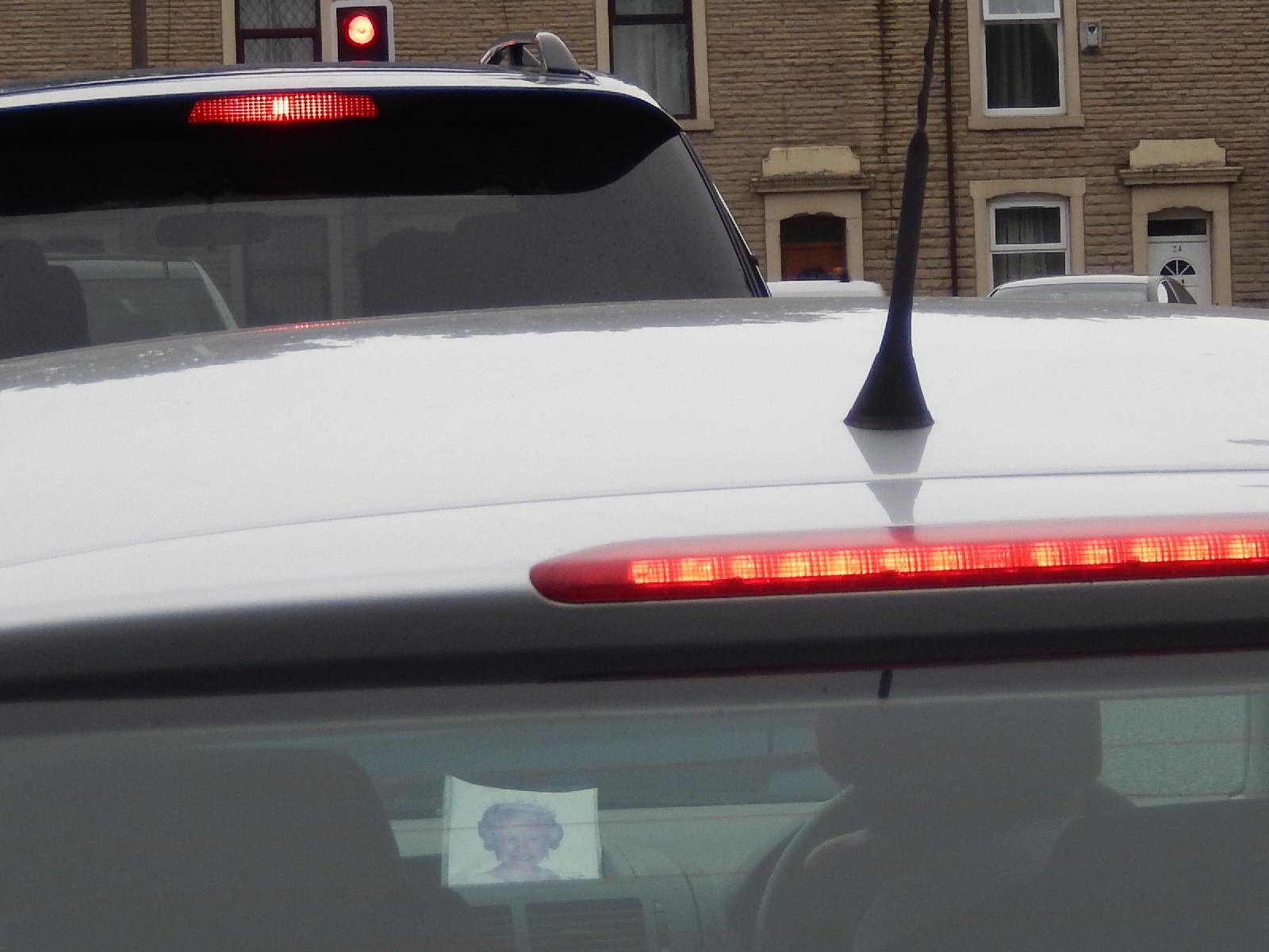 ![]() Don't stare, but that car in front has got a picture of the Queen on the dashboard. UTC Time: 13:15, Tuesday 18 August 2015 Local Time: 14:15, Tuesday 18 August 2015 Estimate of longitude: 2° 27' 23.36" W = -2.456490° Estimate of latitude: 53° 44' 58.85" N = 53.749680° Possible error on position estimate: 100 metres | |