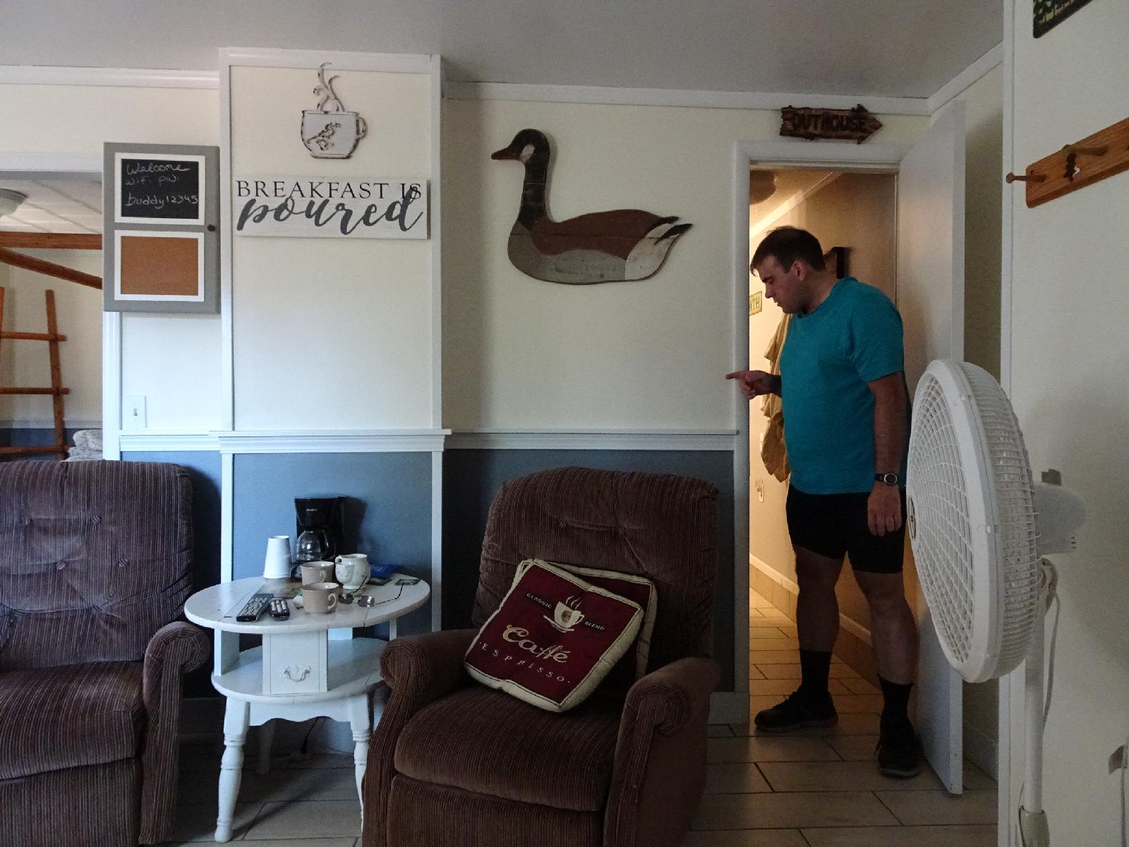 ![]() Every time I came out of the bathroom, I expected the light switch to be here. It's actually at the other end of the bathroom, above the sink. I expressed alarm at light switches in bathrooms on my 2007 trip and some people tried to justify it but I still can't get used to it. UTC Time: 14:47, Monday 31 July 2017 Local Time: 07:47, Monday 31 July 2017 Estimate of longitude: 122° 39' 18.94" W = -122.655260° Estimate of latitude: 44° 24' 34.63" N = 44.409620° Possible error on position estimate: 100 metres | |