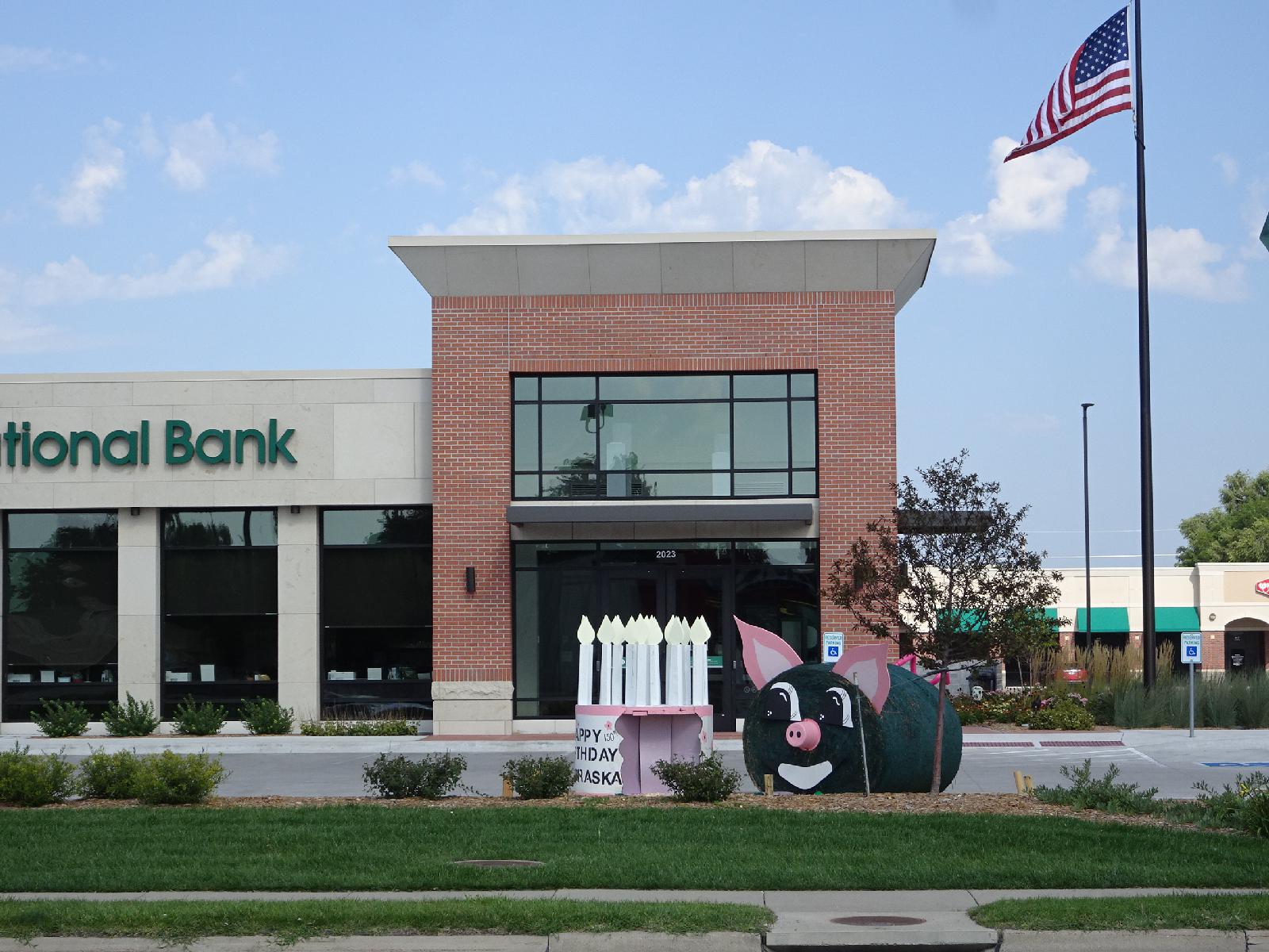 ![]() Nebraska joined the United States in 1867. This bank has chosen to mark the 150th anniversary using a big green pig made out of a bale of hay. UTC Time: 21:38, Saturday 19 August 2017 Local Time: 16:38, Saturday 19 August 2017 Estimate of longitude: 98° 20' 23.75" W = -98.339930° Estimate of latitude: 40° 54' 5.11" N = 40.901420° Possible error on position estimate: 10 metres | |
