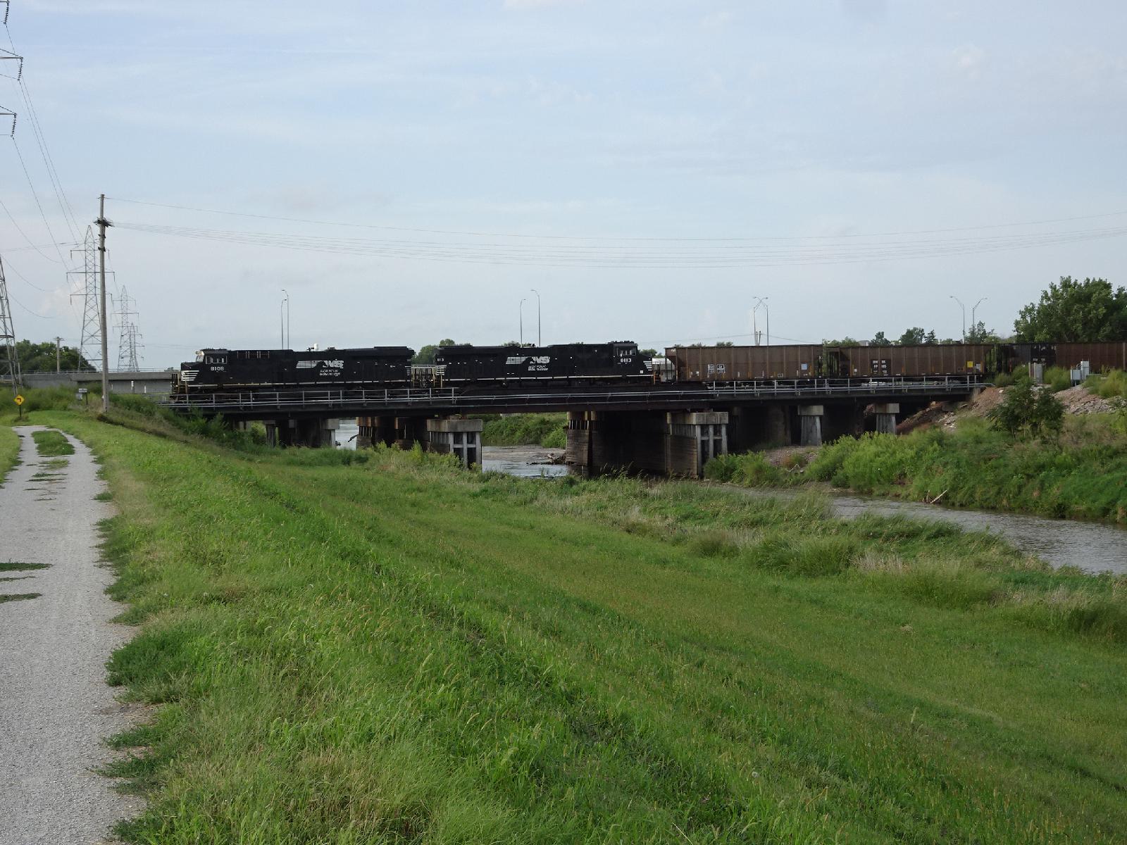 ![]() These train engines are painted in the colours of the Norfolk Southern company but can't actually belong to them because they don't operate in this area. I've seen the occasional rogue engine on a BNSF train. One of them was in the livery of Canadian National. UTC Time: 13:19, Monday 21 August 2017 Local Time: 08:19, Monday 21 August 2017 Estimate of longitude: 96° 43' 21.83" W = -96.722730° Estimate of latitude: 40° 48' 34.34" N = 40.809540° Possible error on position estimate: 20 metres | |