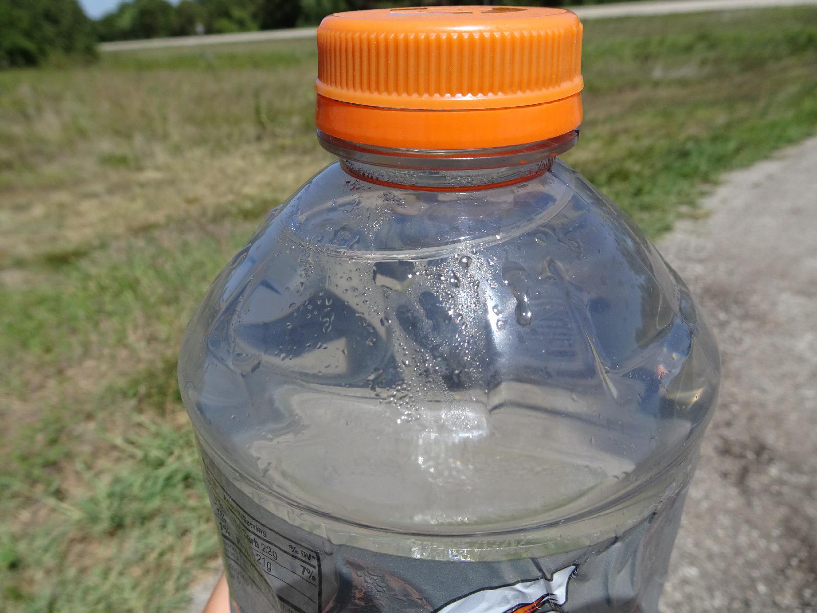 ![]() Keeping this bottle wrapped up in my fleece in my panier is very effective at keeping it cold for hours even on a hot day. The trouble is that it's not easy to drink while it's in there and if I use this water to refill the bottles which are mounted on the bike then by the next time I come to drink out of one of them, it has warmed up. UTC Time: 18:48, Tuesday 22 August 2017 Local Time: 13:48, Tuesday 22 August 2017 Estimate of longitude: 95° 47' 19.57" W = -95.788770° Estimate of latitude: 39° 55' 24.49" N = 39.923470° Possible error on position estimate: 5 metres | |