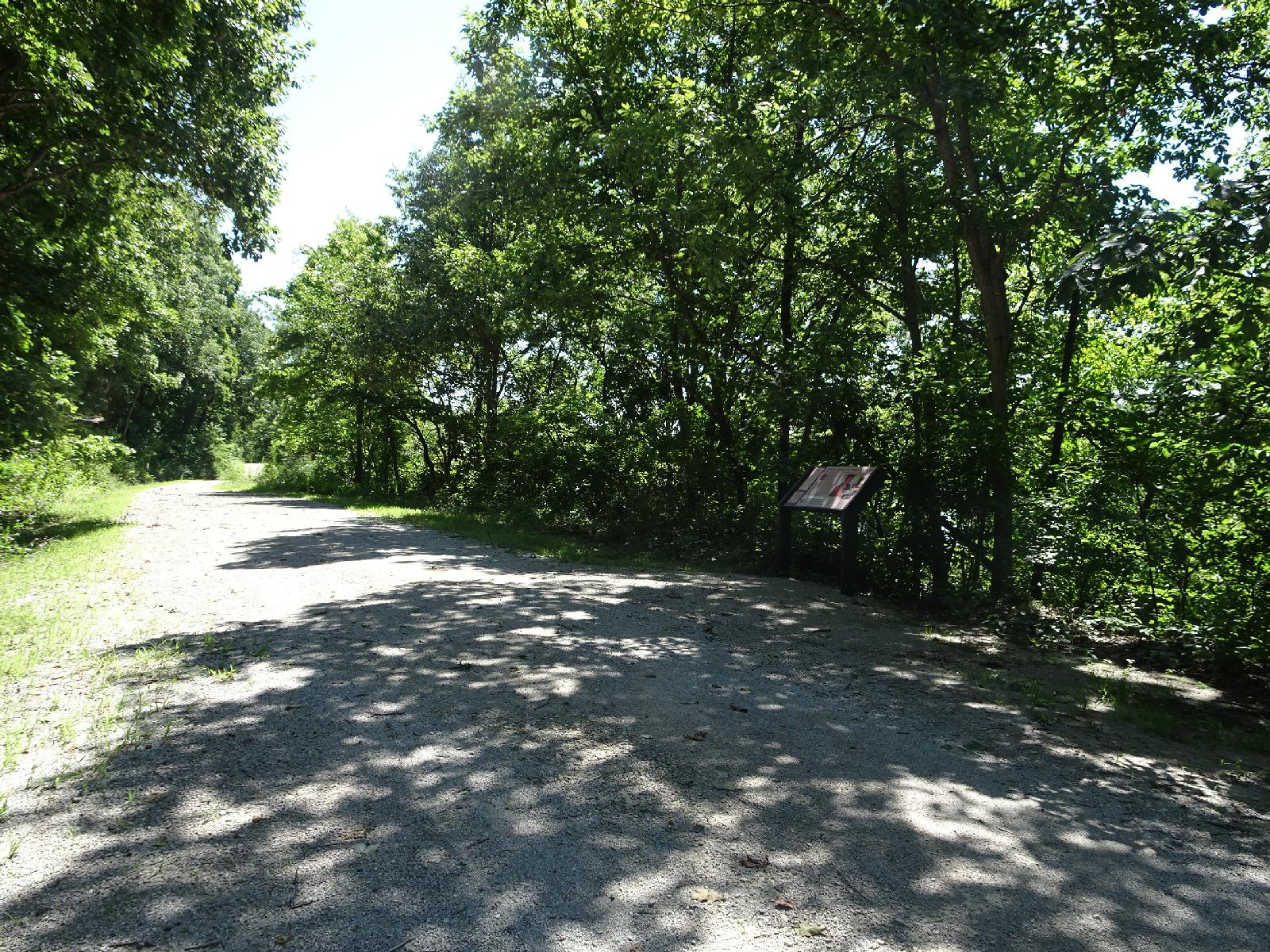 ![]() This track doesn't look like it gets much use but it has information boards in several places. UTC Time: 19:16, Wednesday 23 August 2017 Local Time: 14:16, Wednesday 23 August 2017 Estimate of longitude: 94° 52' 42.67" W = -94.878520° Estimate of latitude: 39° 22' 58.51" N = 39.382920° Possible error on position estimate: 20 metres | |