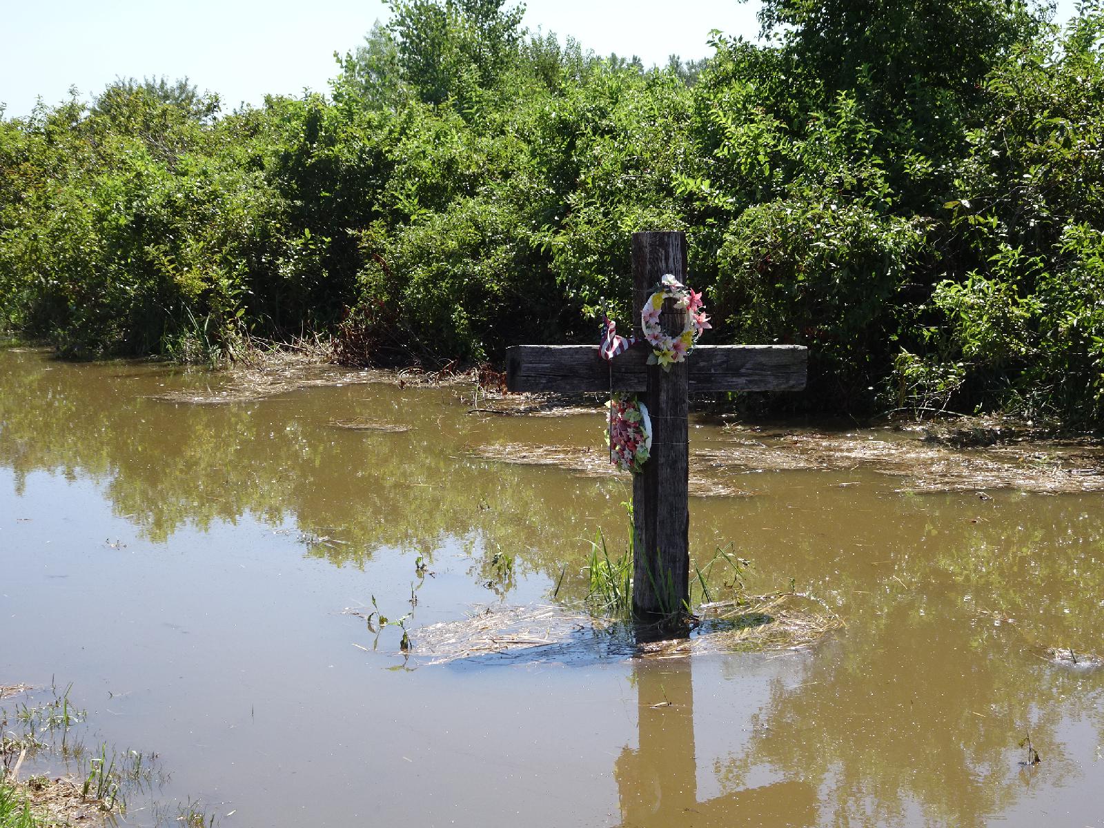 ![]() A cross in a flooded ditch next to the road. UTC Time: 19:35, Wednesday 23 August 2017 Local Time: 14:35, Wednesday 23 August 2017 Estimate of longitude: 94° 51' 43.85" W = -94.862180° Estimate of latitude: 39° 20' 27.28" N = 39.340910° Possible error on position estimate: 10 metres | |