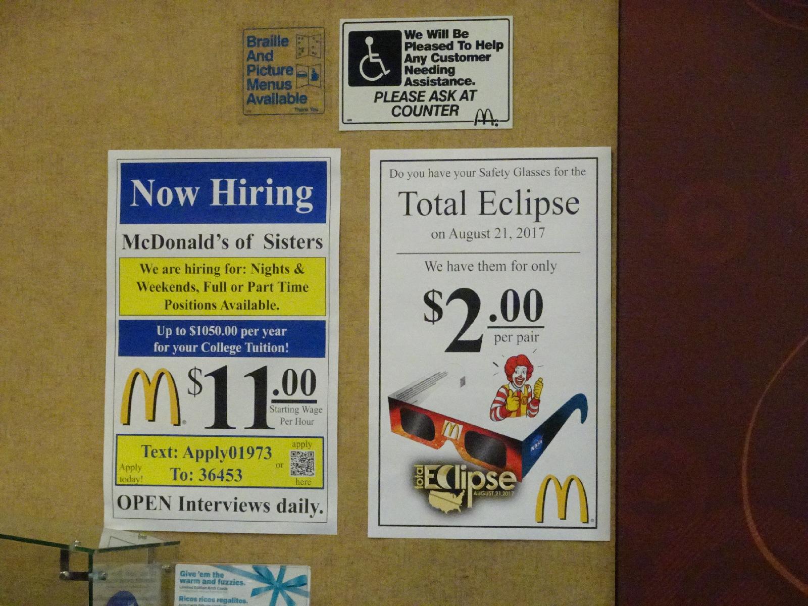 ![]() The poster on the right involves aspects of two of my trips. I don't know if it's because of my slight illness, but I don't seem to have much of an appetite at the moment. All I would eat today would be a double quarter pounder with cheese with fries and a drink, and a small tub of gummy worms. When I'm spending 12 hours on the bike, I would expect to want more than that. I have been drinking Gatorade but that's not terribly calorific. I've bought 3 litres of Pepsi here, along with a US gallon of water, to see if that can keep me sustained for the next day or so if I'm not eating much. UTC Time: 00:30, Tuesday 01 August 2017 Local Time: 17:30, Monday 31 July 2017 Estimate of longitude: 121° 33' 43.13" W = -121.561980° Estimate of latitude: 44° 17' 52.19" N = 44.297830° Possible error on position estimate: 10 metres | |