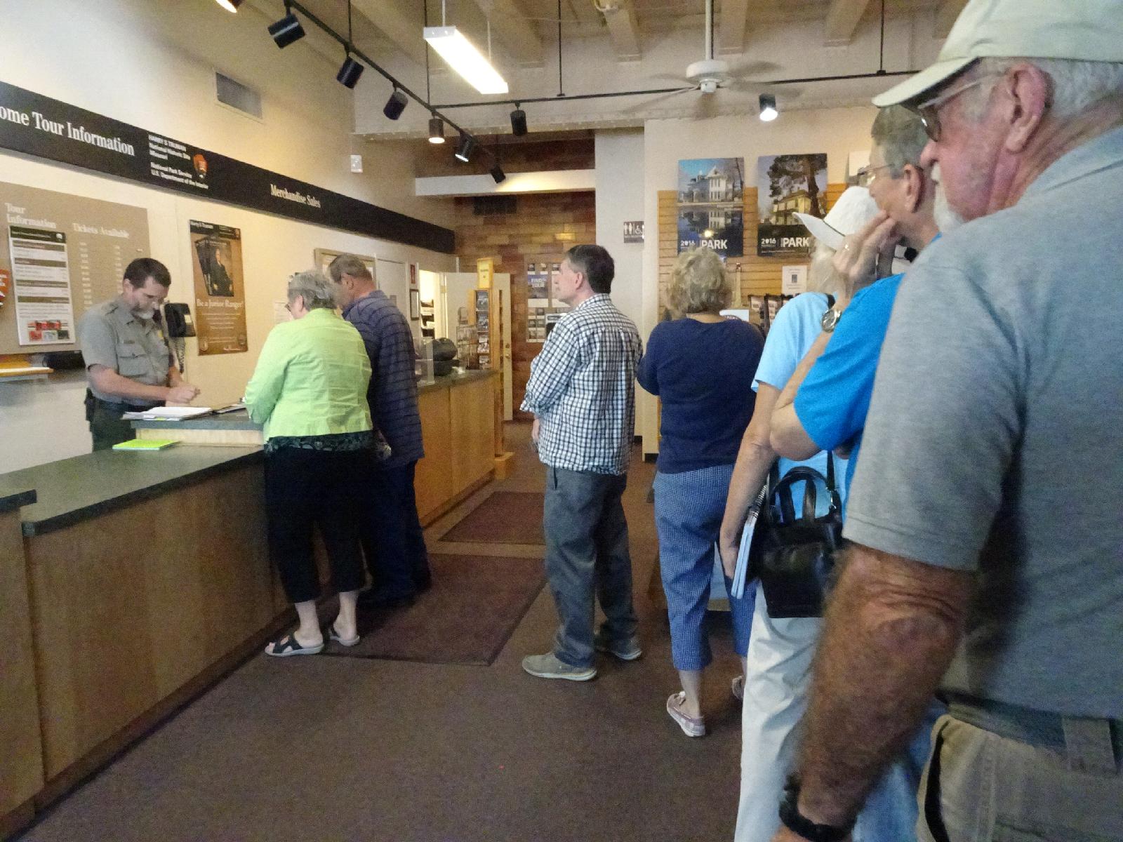 ![]() This big queue is mainly people buying some king of pensioners' annual pass to the National Parks because the price of it is going to go up significantly in a few days. UTC Time: 16:23, Thursday 24 August 2017 Local Time: 11:23, Thursday 24 August 2017 Estimate of longitude: 94° 24' 56.16" W = -94.415600° Estimate of latitude: 39° 5' 37.03" N = 39.093620° Possible error on position estimate: 20 metres | |