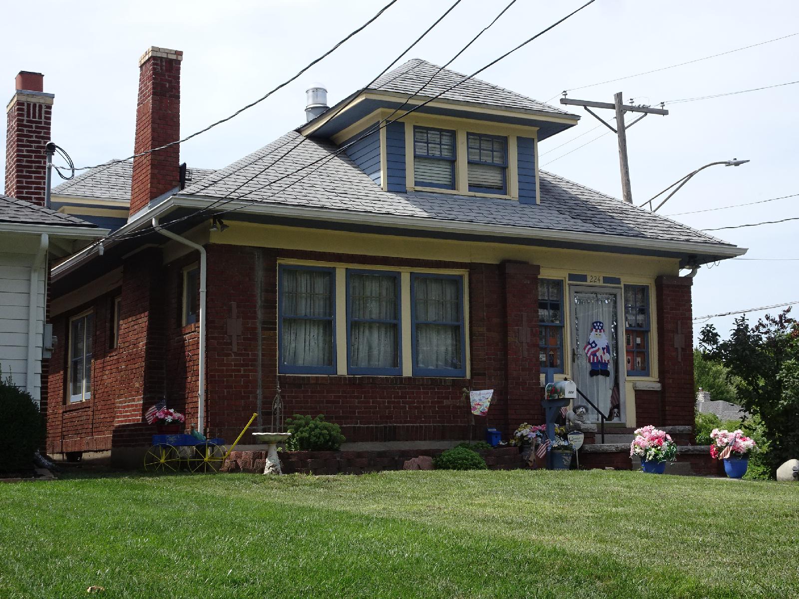 ![]() After Harry Truman's time as president ended, he returned to live in Independence full time and had no security provision apart from the low fence around the garden which you could see in the previous pictures, and some bushes to shield the back porch from public view. After President Kennedy was assassinated in 1963, it was decided that all former presidents should have protection so the Secret Servece moved into this house, a few doors away. Apparently, they never had much to do here and generally spent their time doing odd jobs at the Truman house, such as mowing the lawn. The only time they did respond to an emergency was when the Trumans' grandson visited once and pressed the panic button by mistake. UTC Time: 19:19, Thursday 24 August 2017 Local Time: 14:19, Thursday 24 August 2017 Estimate of longitude: 94° 25' 25.82" W = -94.423840° Estimate of latitude: 39° 5' 38.00" N = 39.093890° Possible error on position estimate: 10 metres | |
