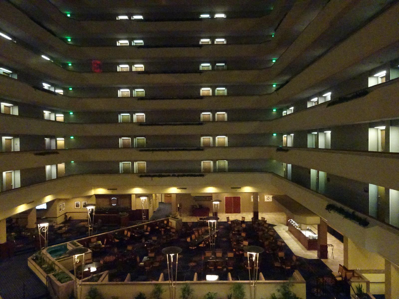 ![]() The view from the lift. I predicted that I would be using a lift here. I would have looked for the stairs but firstly it's a bubble lift, which is quite fun and secondly, I've got other things on my mind at the moment because I've just discovered that my driving licence is missing. I handed it to the man on reception at last night's hotel for him to photocopy and I don't remember getting it back. It must have slipped my mind to check because we were talking about a few other things, including disagreeing about what he would have to dial to get an international line if for any reason he might possibly want to call my mobile. There was nobody at reception there when I left there this morning so I just left my key card on the desk. If they had found my licence by then, they wouldn't have had chance to give it to me. UTC Time: 23:22, Saturday 26 August 2017 Local Time: 18:21, Saturday 26 August 2017 Estimate of longitude: 92° 10' 42.24" W = -92.178400° Estimate of latitude: 38° 34' 43.93" N = 38.578870° Possible error on position estimate: 1000 metres | |