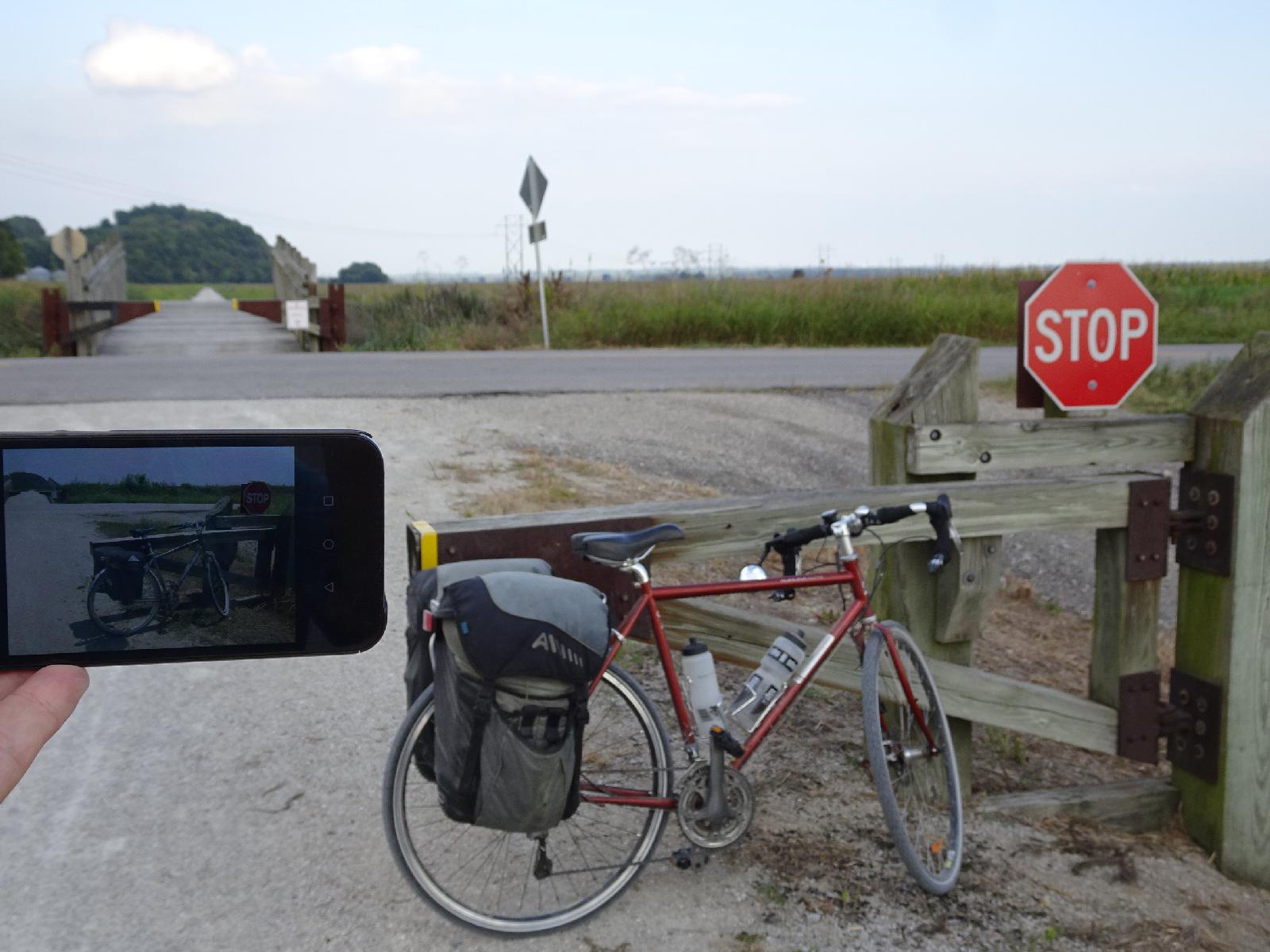 ![]() It's been 3697 days since I was last here. I've now ridden to this spot from both coasts. UTC Time: 22:55, Monday 28 August 2017 Local Time: 17:55, Monday 28 August 2017 Estimate of longitude: 90° 57' 19.12" W = -90.955310° Estimate of latitude: 38° 34' 5.20" N = 38.568110° Possible error on position estimate: 5 metres | |