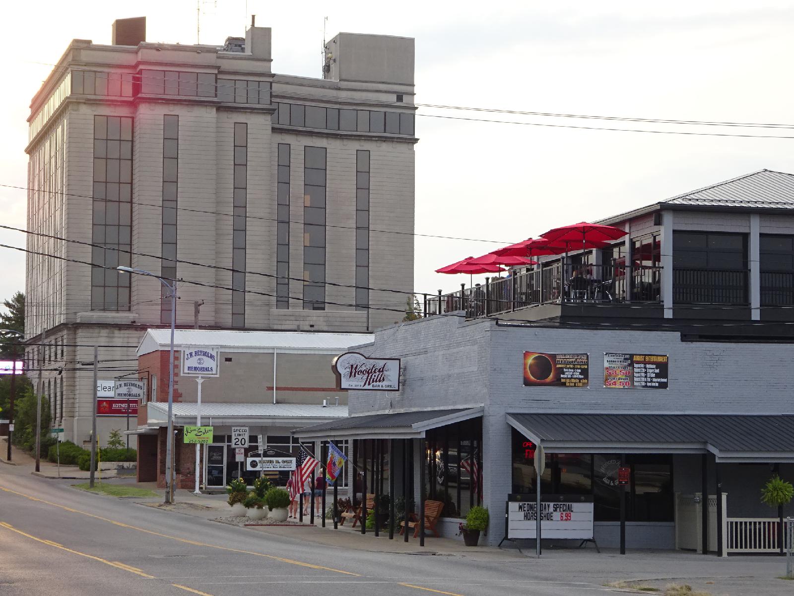 ![]() That looks like a pleasant place to eat but my hotel is a little way out of town so I won't want to walk all the way back here. UTC Time: 23:33, Wednesday 30 August 2017 Local Time: 18:33, Wednesday 30 August 2017 Estimate of longitude: 88° 32' 14.24" W = -88.537290° Estimate of latitude: 37° 44' 17.81" N = 37.738280° Possible error on position estimate: 5 metres | |