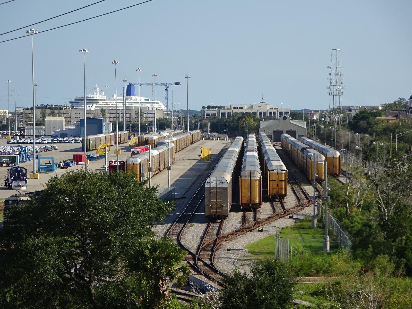 ![]() Although these wagons look uniform, they bear the logos of several different railway companies. UTC Time: 21:02, Thursday 14 September 2017 Local Time: 17:02, Thursday 14 September 2017 Estimate of longitude: 79° 56' 11.04" W = -79.936400° Estimate of latitude: 32° 48' 11.88" N = 32.803300° Possible error on position estimate: 5 metres | |