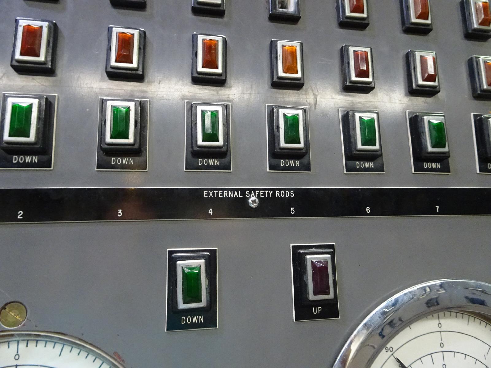 ![]() Controls for the safety rods. UTC Time: 17:33, Tuesday 08 August 2017 Local Time: 11:33, Tuesday 08 August 2017 Estimate of longitude: 113° 0' 23.87" W = -113.006630° Estimate of latitude: 43° 30' 41.40" N = 43.511500° Possible error on position estimate: 10 metres | |