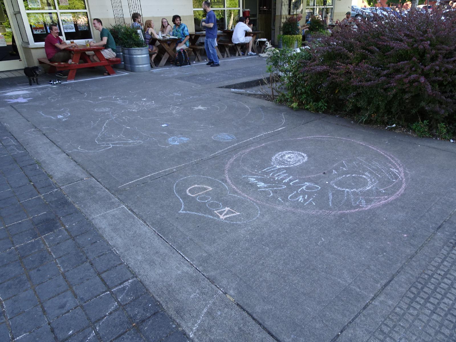 ![]() For a couple of streets, next to the river, the pavements are covered in chalk writing. I rode over some of it earlier on the cycle lane. UTC Time: 01:50, Sunday 30 July 2017 Local Time: 18:50, Saturday 29 July 2017 Estimate of longitude: 123° 15' 32.65" W = -123.259070° Estimate of latitude: 44° 33' 47.95" N = 44.563320° Possible error on position estimate: 10 metres | |
