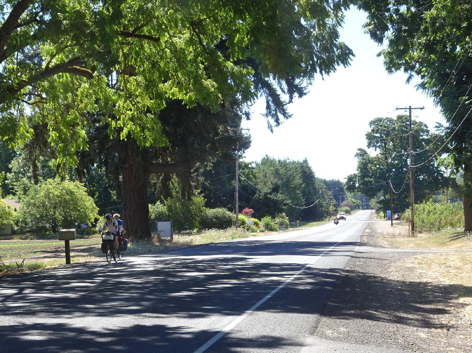 ![]() Two touring cyclists. On this road, I also saw a couple on a tandem, and a man riding a bike with a dutch flag flying propudly on the handlebars. I also saw a live snake, and what looked like a Model T Ford going the other way but I didn't get pictures of any of them. UTC Time: 17:37, Sunday 30 July 2017 Local Time: 10:37, Sunday 30 July 2017 Estimate of longitude: 123° 12' 48.96" W = -123.213600° Estimate of latitude: 44° 32' 44.77" N = 44.545770° Possible error on position estimate: 100 metres | |