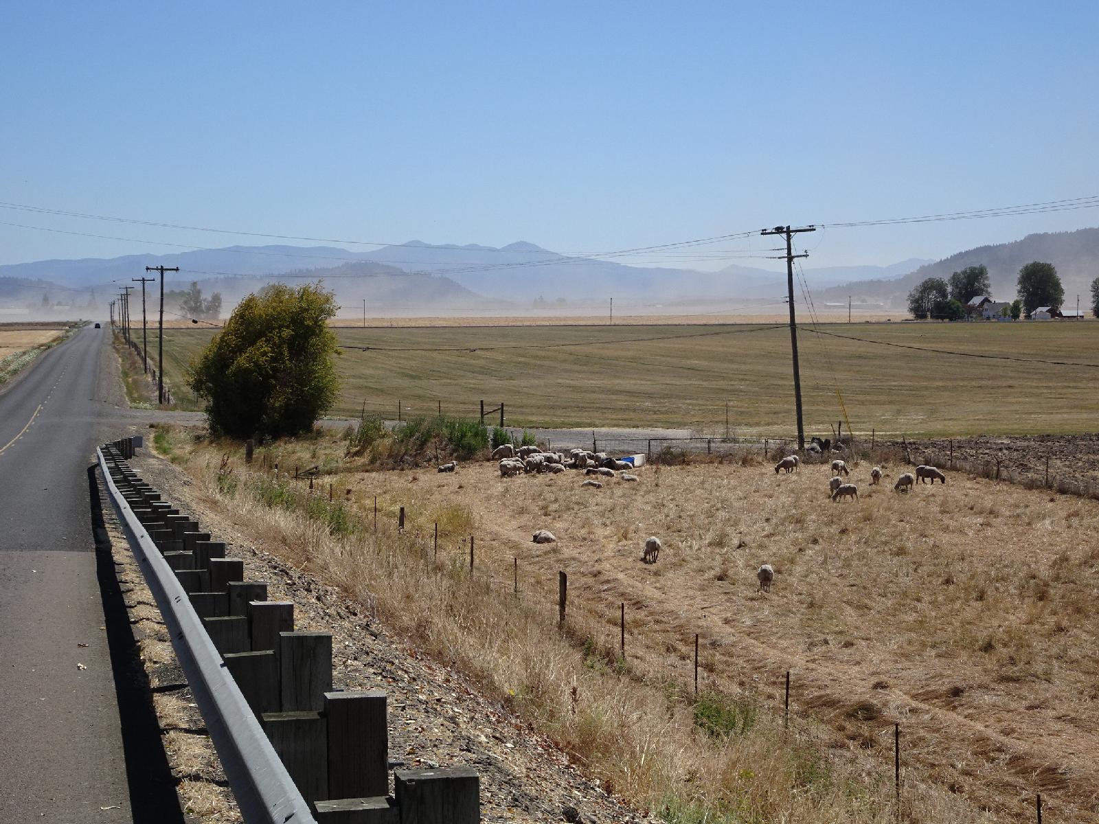 ![]() There's a dust storm blowing across in the distance. No dust devils though. when I drove through here on Friday, there were several, including one which was swirling on the spot right next to the motorway. UTC Time: 18:34, Sunday 30 July 2017 Local Time: 11:34, Sunday 30 July 2017 Estimate of longitude: 123° 3' 38.30" W = -123.060640° Estimate of latitude: 44° 32' 28.36" N = 44.541210° Possible error on position estimate: 100 metres | |