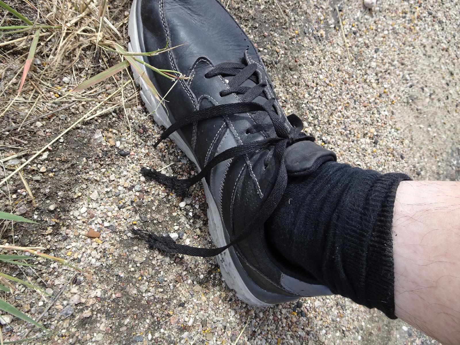 ![]() My shoelace must have just decided to hang a way it has never hung before. In three deft bites, my front cogs chewed right through it. UTC Time: 18:27, Monday 14 August 2017 Local Time: 12:27, Monday 14 August 2017 Estimate of longitude: 105° 50' 28.50" W = -105.841250° Estimate of latitude: 42° 53' 27.92" N = 42.891090° Possible error on position estimate: 5 metres | |