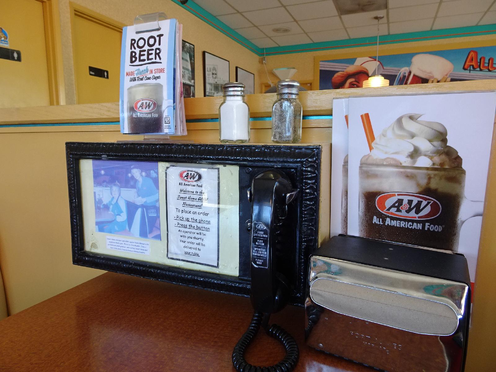 ![]() Inside the diner. Each table has a telephone which, according to the label, can be used to order food. I didn't try it. UTC Time: 21:47, Sunday 30 July 2017 Local Time: 14:47, Sunday 30 July 2017 Estimate of longitude: 122° 43' 54.84" W = -122.731900° Estimate of latitude: 44° 23' 51.72" N = 44.397700° Possible error on position estimate: 5000 metres | |