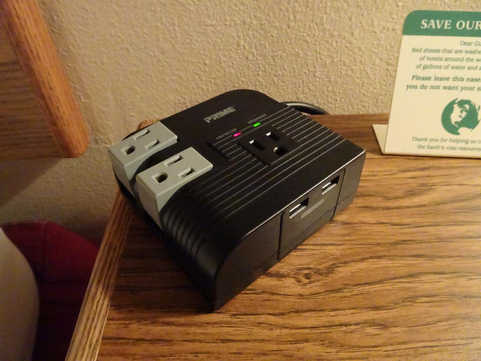 ![]() Several of the hotels have had things like this: bedside mains sockets and USB power sockets. They're quite handy. UTC Time: 23:17, Tuesday 15 August 2017 Local Time: 17:17, Tuesday 15 August 2017 Estimate of longitude: 104° 11' 6.50" W = -104.185140° Estimate of latitude: 42° 3' 39.96" N = 42.061100° Possible error on position estimate: 100 metres | |