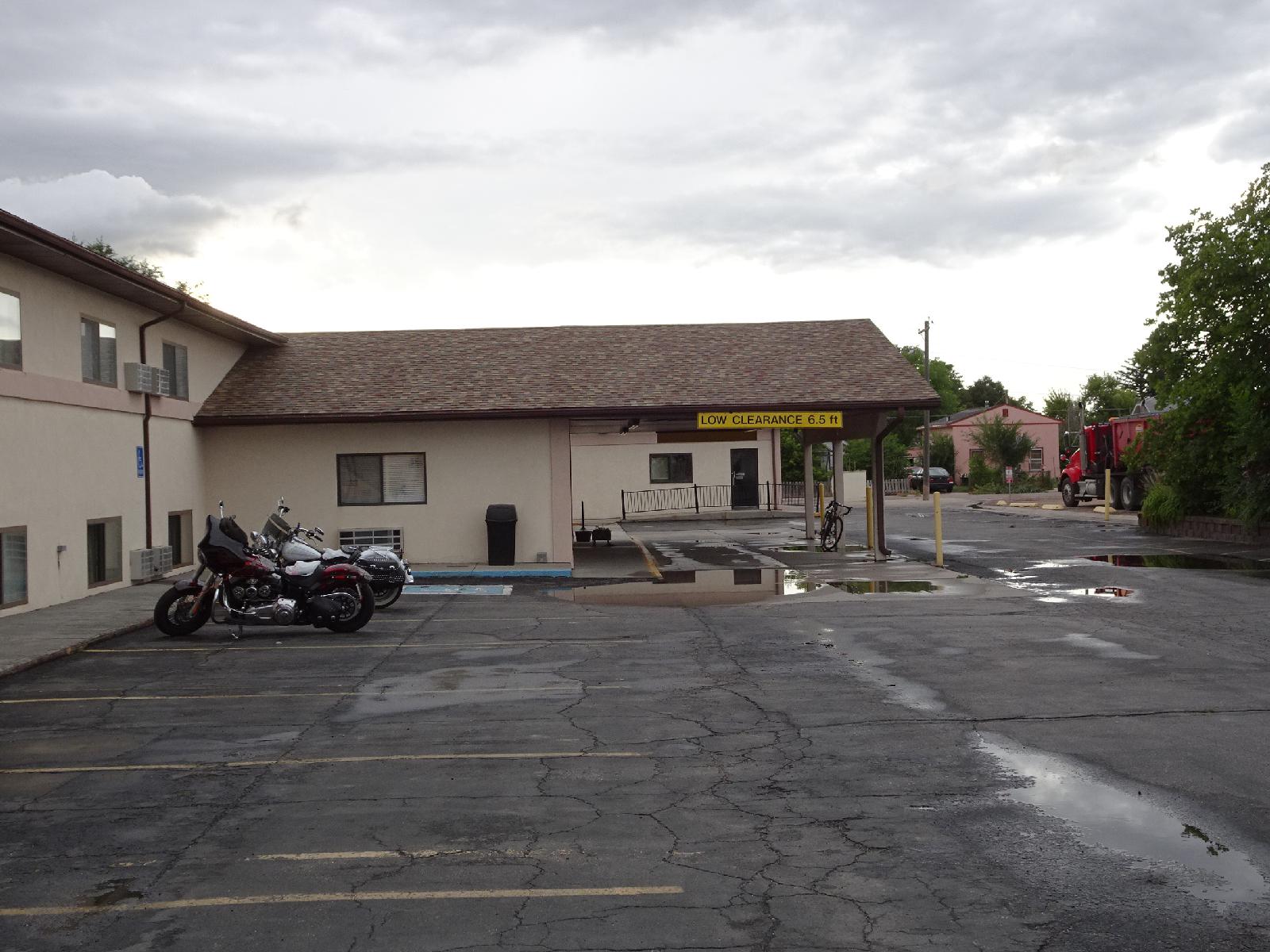 ![]() The receptionist said that I could leave my bike parked under the canopy, in another attempt to keep it dry. UTC Time: 00:33, Wednesday 16 August 2017 Local Time: 18:33, Tuesday 15 August 2017 Estimate of longitude: 104° 11' 4.99" W = -104.184720° Estimate of latitude: 42° 3' 39.46" N = 42.060960° Possible error on position estimate: 10 metres | |