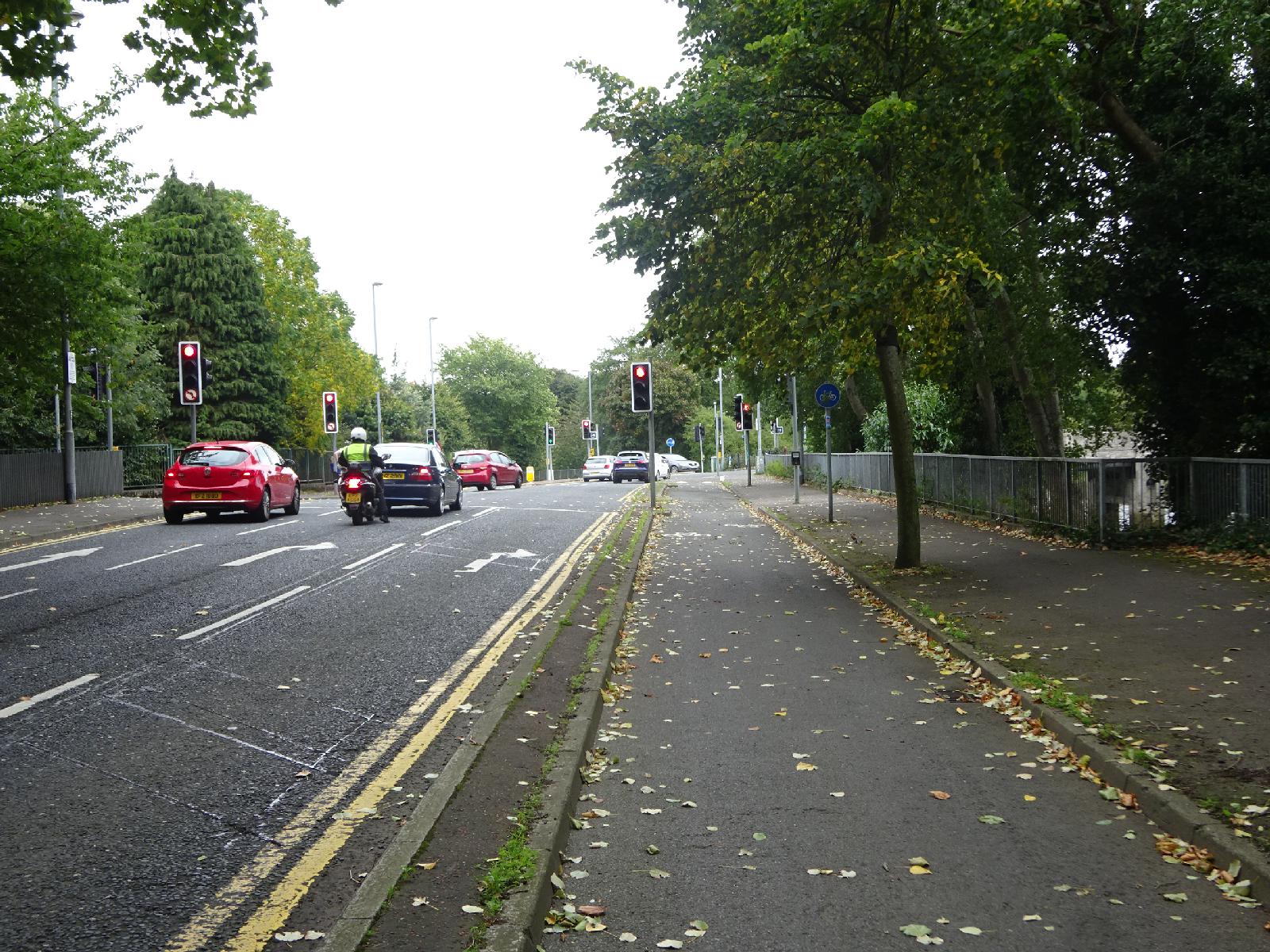![]() This road has a good cycle lane. UTC Time: 12:39, Monday 17 September 2018 Local Time: 13:39, Monday 17 September 2018 Estimate of longitude: 5° 55' 48.11" W = -5.930030° Estimate of latitude: 54° 34' 37.20" N = 54.577000° Possible error on position estimate: 10 metres | |