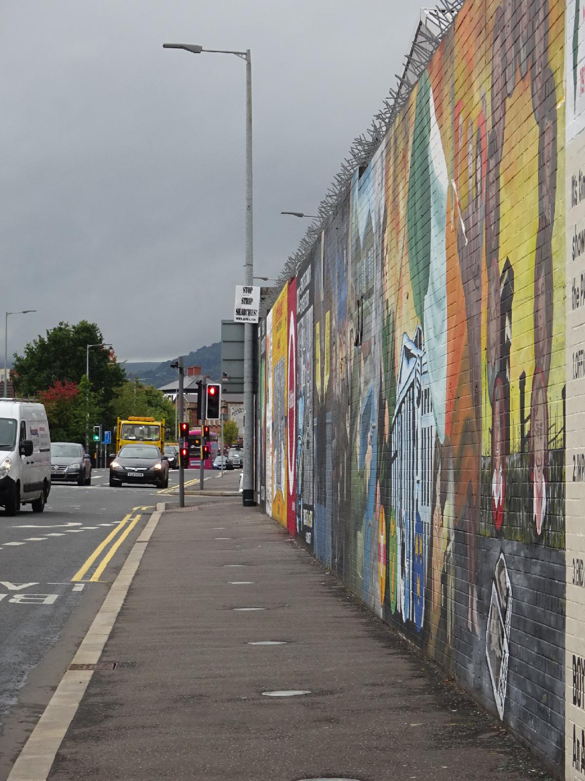 ![]() It looks like there are lights in the pavament to illuminate the murals at night. UTC Time: 13:43, Monday 17 September 2018 Local Time: 14:43, Monday 17 September 2018 Estimate of longitude: 5° 56' 42.76" W = -5.945210° Estimate of latitude: 54° 35' 59.53" N = 54.599870° Possible error on position estimate: 10 metres | |