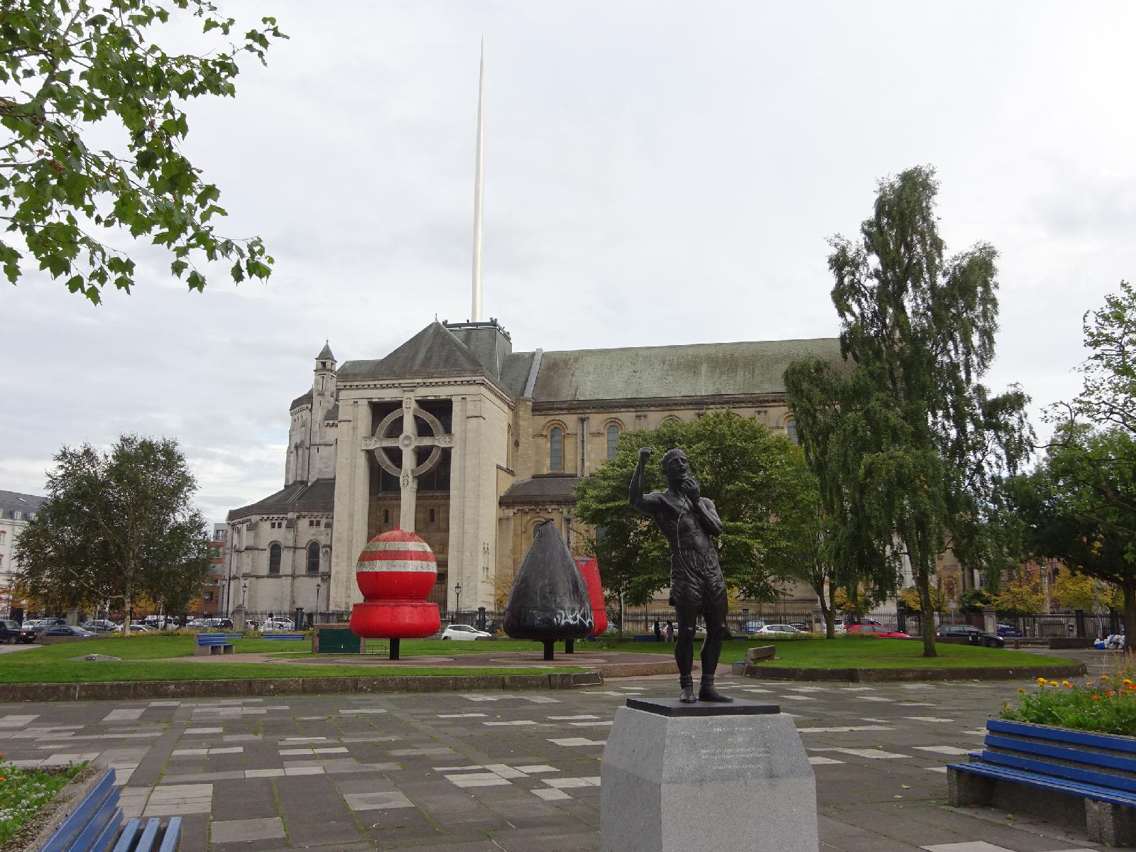 ![]() The stonework of St. Anne's Cathedral took 82 years to build and was completed in 1981. You can see that the North transept is clearly more modern than the rest. The big stainless steel spire was added in 2007. In the foreground are three bouys and s statue of the boxer John Rimy Monaghan. UTC Time: 16:40, Monday 17 September 2018 Local Time: 17:40, Monday 17 September 2018 Estimate of longitude: 5° 55' 46.99" W = -5.929720° Estimate of latitude: 54° 36' 12.67" N = 54.603520° Possible error on position estimate: 10 metres | |