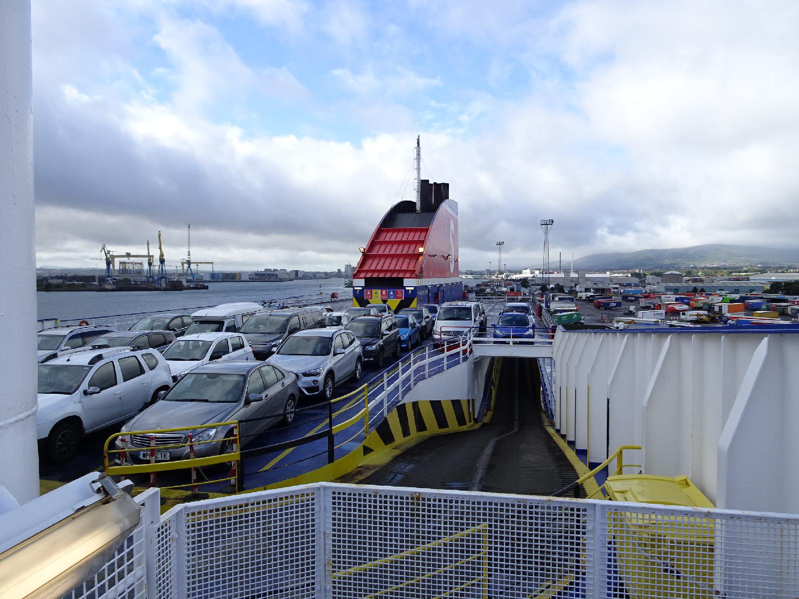 ![]() The upper car deck. UTC Time: 09:38, Tuesday 18 September 2018 Local Time: 10:38, Tuesday 18 September 2018 Estimate of longitude: 5° 53' 15.58" W = -5.887660° Estimate of latitude: 54° 37' 47.03" N = 54.629730° Possible error on position estimate: 10 metres | |