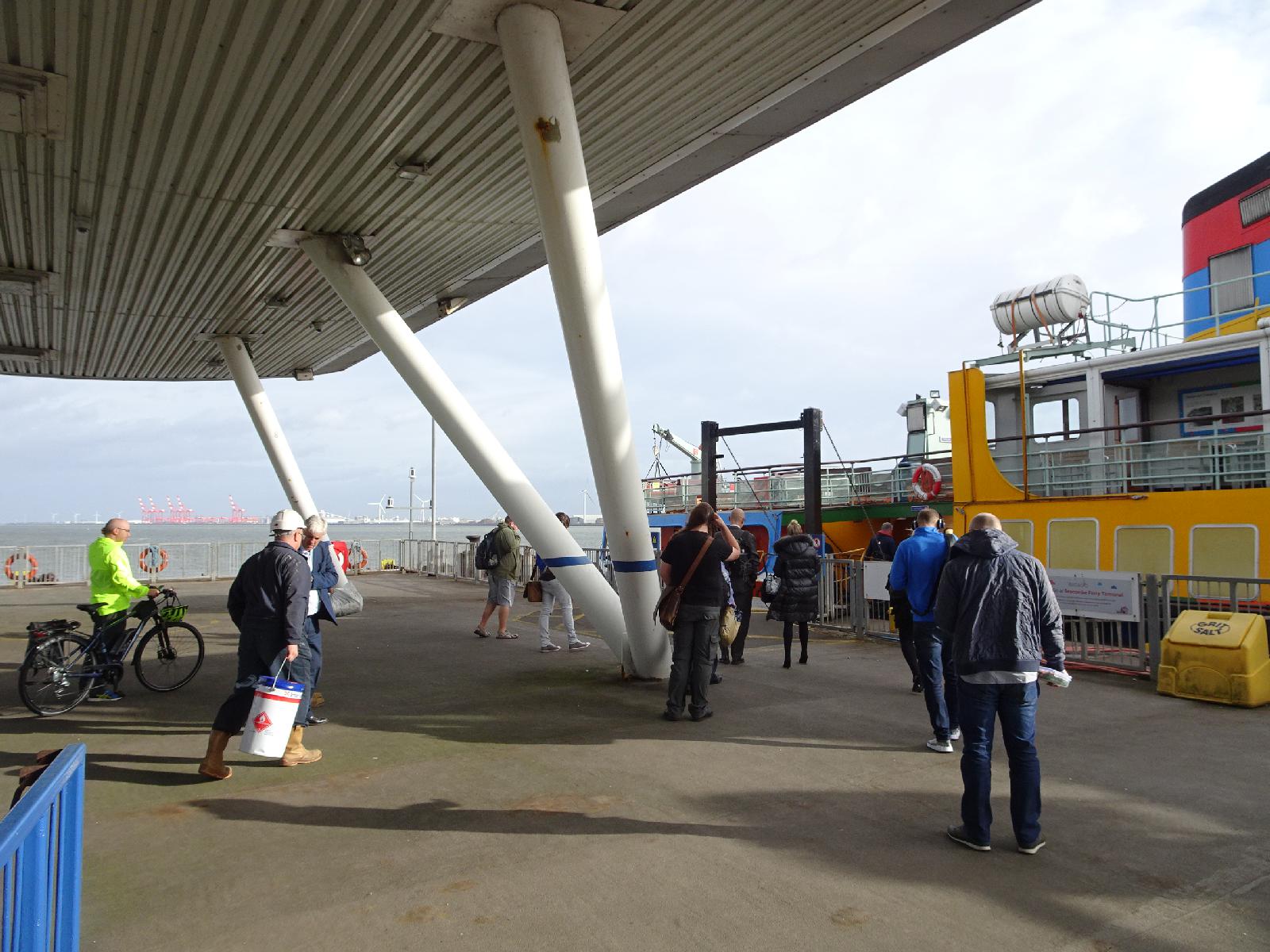 ![]() The ferry operates tourist trips up and down the river in the middle of the day, and a commuter shuttle service across the river in the morning and evening. I had expected the commuter service to be busy but these are the only people getting on it. UTC Time: 08:20, Wednesday 19 September 2018 Local Time: 09:20, Wednesday 19 September 2018 Estimate of longitude: 3° 0' 53.60" W = -3.014890° Estimate of latitude: 53° 24' 36.97" N = 53.410270° Possible error on position estimate: 10 metres | |