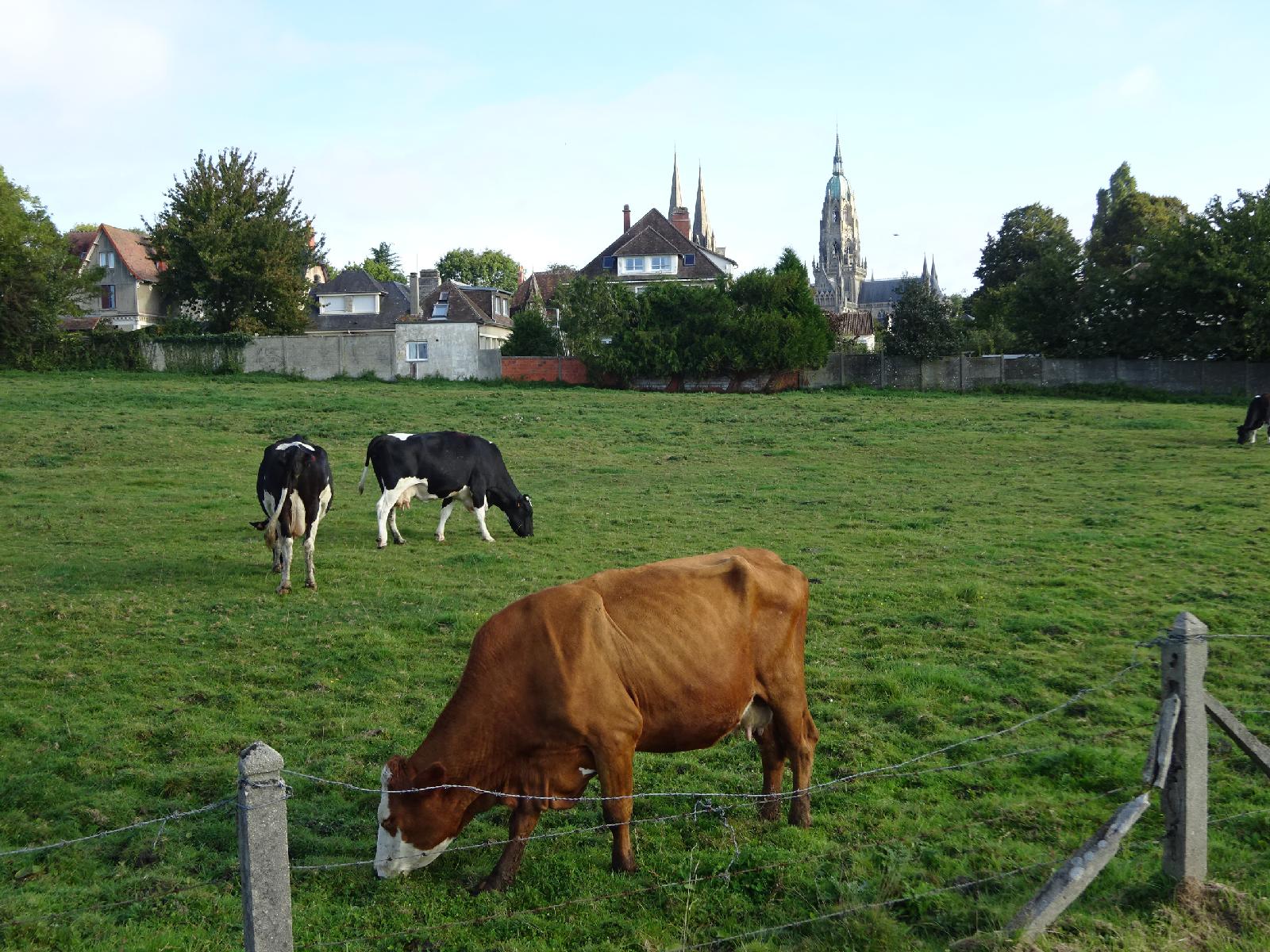 ![]() Some more cows between the museum and my hotel. There are no cows on the Bayeux Tapestry; just lots of horses and a few dead pigs as food. UTC Time: 07:45, Tuesday 11 September 2018 Local Time: 09:45, Tuesday 11 September 2018 Estimate of longitude: 0° 42' 16.42" W = -0.704560° Estimate of latitude: 49° 16' 17.83" N = 49.271620° Possible error on position estimate: 20 metres | |
