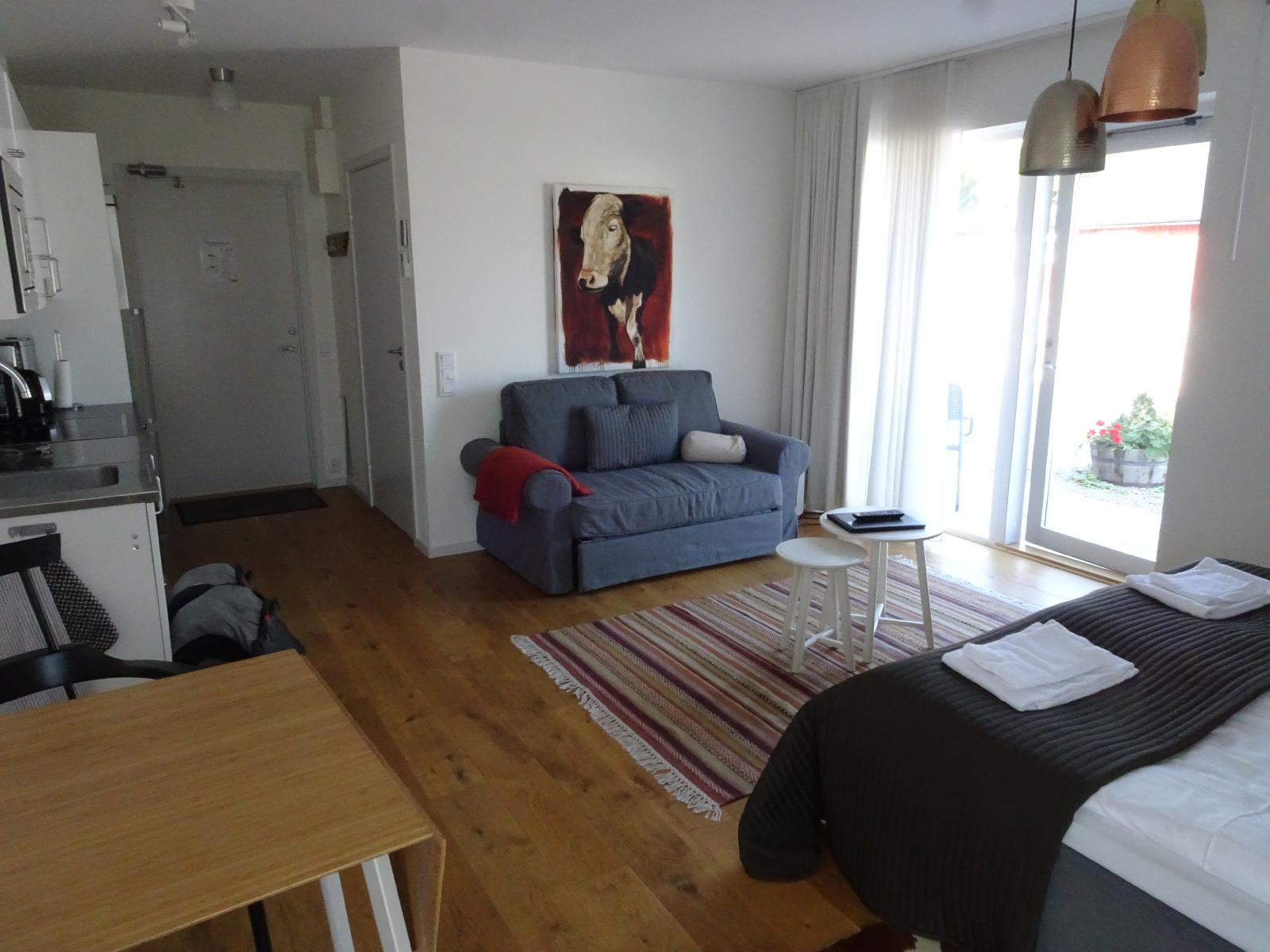 ![]() A few days ago, I mentioned that on my 2003 trip, I was impressed at how German hotelliers could speak simply to people like me who don't know much German. The reason why I noticed that was because I had just come from Sweden, where they can't stop talking. This place was a classic example. As soon as I arrived, the woman showed me the room that I had booked and then to this much bigger room, and persuaded me to pay about £10 extra for this one. She then talked at length about how there is coffee at reception but I can buy a beer there later if I want, where I am and am not allowed to drink my own alcohol, and that I am allowed to eat the apples from the trees. She said I could put my bike in the garage and that it would be locked at night. Then she explained the controls for the air conditioner, the cooker and the cooker hood, and showed me that there were towels on the bed and toilet roll in the usual place next to the toilet, and that the water is very good here so I won't need bottled water. We went outside and she explained which chairs I'm not allowed to sit in because they belong to another room, but then also pointed out all the ones that I am allowed to sit in. She explained that this is the Cow room because all the rooms here are named after farmyard animals and this is the second biggest. Surprisingly, she didn't actually specify what the biggest was called. UTC Time: 14:01, Monday 26 August 2019 Local Time: 16:01, Monday 26 August 2019 Estimate of longitude: 12° 47' 27.20" E = 12.790890° Estimate of latitude: 56° 40' 0.55" N = 56.666820° Possible error on position estimate: 20 metres | |