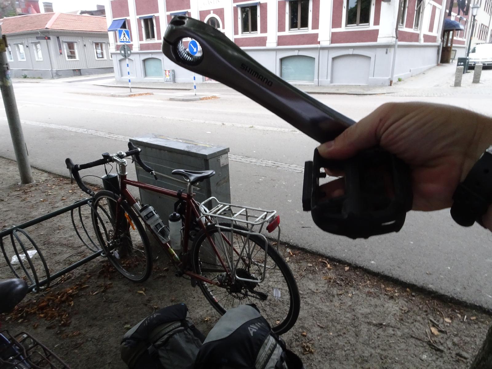 ![]() As I set off for the short ride from the coast to my hotel, I noticed that the left pedal seemed wobbly. Within a few hundred metres, it had fallen off. I don't know how big a job it's going to be to repair this. I'll tell you though, it was a real pleasure to walk the bike to here without the pedal hitting me in the shins. UTC Time: 13:59, Tuesday 27 August 2019 Local Time: 15:59, Tuesday 27 August 2019 Estimate of longitude: 12° 14' 55.97" E = 12.248880° Estimate of latitude: 57° 6' 25.27" N = 57.107020° Possible error on position estimate: 5 metres | |