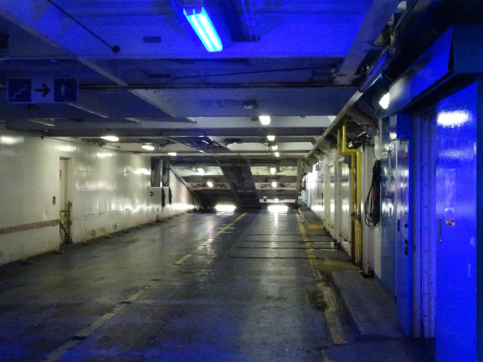 ![]() Somebody walked part of the way to the bike room with me, then pointed where it was and left me to it. I haven't found out yet where the stairs are to get off the car deck and what's slightly worrying is that this ceiling looks like it can lower. Looking the other way, I can just see the bottom halves of two lorries. UTC Time: 13:32, Friday 30 August 2019 Local Time: 15:32, Friday 30 August 2019 Estimate of longitude: 11° 54' 43.78" E = 11.912160° Estimate of latitude: 57° 41' 41.82" N = 57.694950° Possible error on position estimate: 200 metres | |